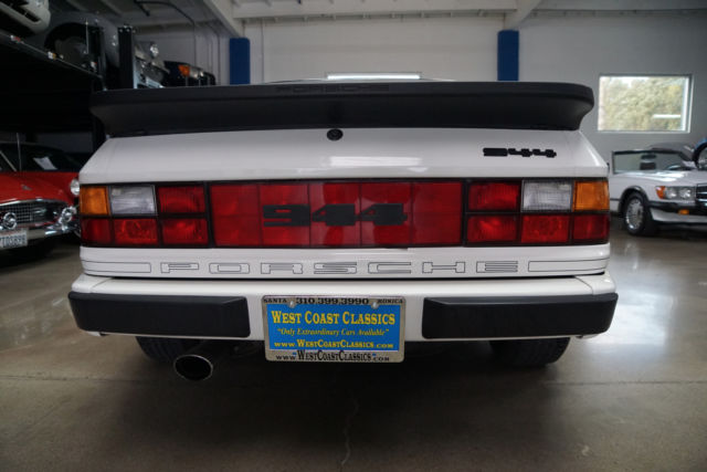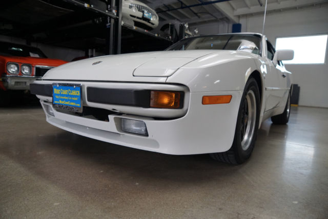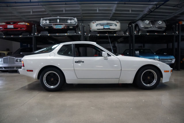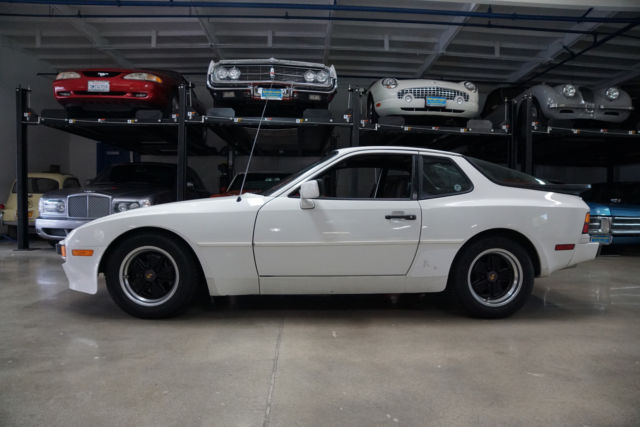 West Coast Classics are proud to present an absolutely exceptional example of this two southern California owner 1984 Porsche 944 2.5L 4 cylinder 5 speed manual Coupe! Finished in the beautiful color combination of its original 'Arctic White' (color code L90E) paint with its original 'Brown' leather seats interior and purchased with rare factory options including the 5 speed manual transmission, removable large sunroof, desirable late 944 model factory Porsche 'Phone Dial 'alloy wheels, sports shock absorbers & stabilizer bars,... protective side moldings, leather steering wheel & seats, automatic speed control and with only 51K original miles!The 944 was built by Porsche from 1982-91 and was a very successful model for the German automaker. The car was one of the prestigious 'Car & Driver's' 'Ten Best List' cars from 1983-1985 as was the Turbo when introduced in 1986 and in 1984 'Car & Driver' named the car the 'Best Handling Production Car In America'.This particular example has obviously always been garaged and has no history of any accidents or damage and has a clean CARFAX report confirming both this history and low mileage.The original factory 'Arctic White' color paint is in excellent condition with only very monor imperfections noticable upon very close inspection as is the original interior. The car drives exactly like a well maintained and serviced Porsche should and must be driven to be fully appreciated and seen to be believed! The engine is extremely strong with no oil leaks, the 5 speed transmission is very smooth shifting and the temperature always remains cool.You will surely look long and hard to find a finer and extremely rare factory loaded and unique example of this exceptionally clean and increasingly collectible and desirable Porsche 944 5 speed manual Coupe available anywhere else!