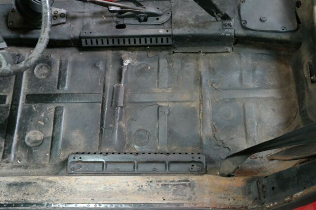I stripped out the interior to inspect the tub. There is some rust damage on the floor behind the passenger seat and a little on the tabs that hold the upholstery on the door jambs. There is also some seam welding on the tub floor behind the seats.