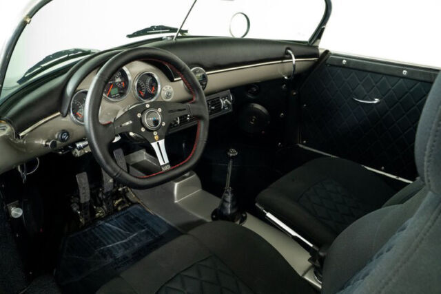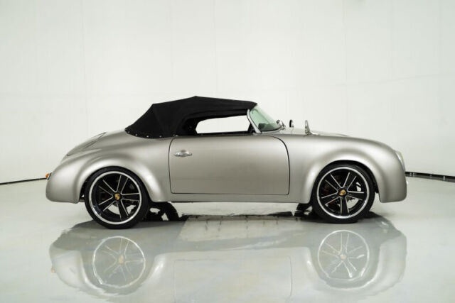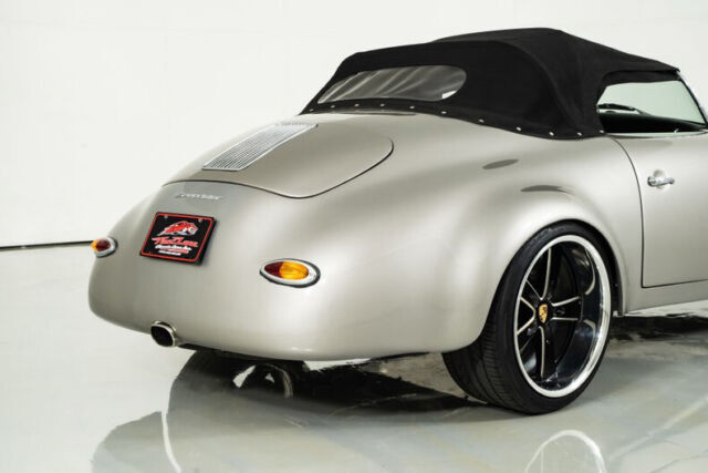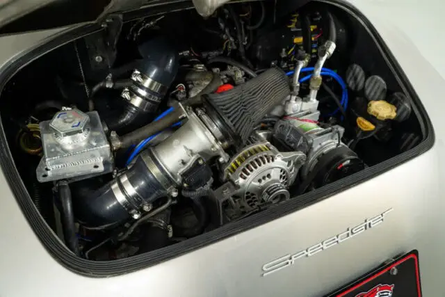 This 1971 Porsche 356 Speedster Replica for sale has a Fuel Injected, Turbo-Charged Subaru Flat 4-250 HP, Rancho Prostreet 4 Speed Transmission, Stage 4 Clutch, Wilwood Hydraulic Slave Cylinder, Super Diff, 3.88:1 Gear Ratio, CMC Wide Body, Painted Metallic Pewter, Powder Coated Ladder Frame, Aluminum Belly Pans, Electric Power Steering, Nardi Steering Wheel, Wilwood 4 Wheel Disc Brakes, Air Conditioning! Manually Operated Canvas Convertible Top, Diamond Stick Seats with Rear Jump Seats, Turbo-Intercooled Subaru Powered 356 Speedster!