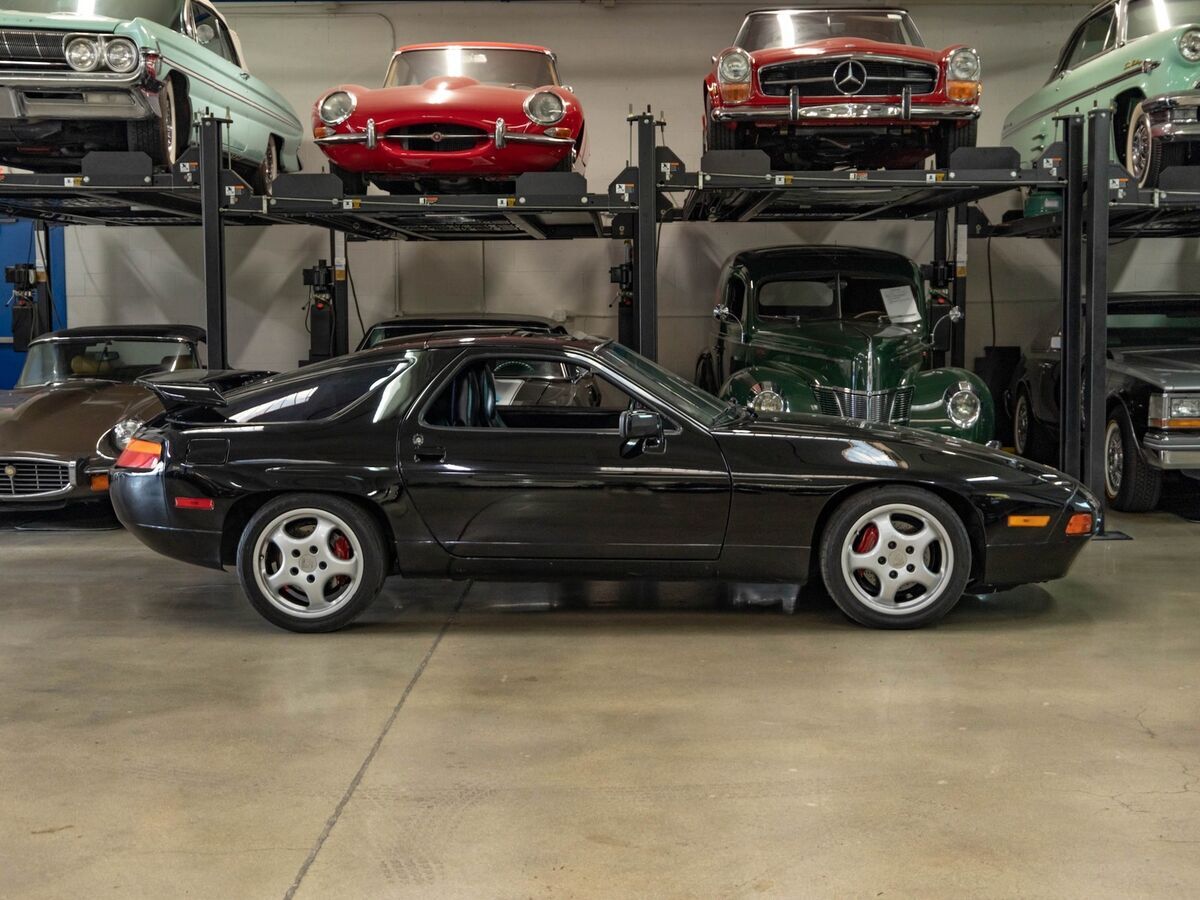 West Coast Classics are proud to present an exceptional example of this very rare 1987 Porsche 928 S4 5.0L 320HP V8 5 speed manual Coupe! Finished in the desirable and beautiful color combination of its extraordinarily rare 'Black' (paint code 700) with its original matching 'Black' (A1 code) leather seats interior! This is a very rare 928 S4, 1 of reportedly only some 434 built in 1987 with a 5 speed manual transmission! This particular example is an extremely striking example in this unique all Black color combination and has obviously always been garaged and has no history of any accidents or damage and has a clean CARFAX report confirming both this history and mileage and comprehensive service history. The car was serviced and maintained for many years at the renown 'German Autotech' of Walnut Creek, CA and has only 104K original and well cared for miles.The original factory 'Black' color paint is in very good condition with only some very minor imperfections noticeable upon close inspection, as is the all original 'Black' leather interior with a rare perfect dash and beautiful original factory carpets and mats. The car drives exactly like a well maintained and serviced Porsche should and must be driven to be fully appreciated and seen to be believed! The engine is extremely strong with no oil leaks, the transmission is very smooth and precise in shifting and the temperature always remains cool. All the options are working as they should including the ice cold air conditioning and power sunroof and windows. The car will also be sold with all of it's original dealer books and manuals.The erstwhile 911 replacement was conceived in the early 70's with no resemblance to any of the marque's previous models. As different from the 911 as it could be with a front mounted water cooled fuel injected V8 connecting to a rear trans-axle and Weissach independent suspension featuring self correcting toe control. An all aluminum V8 with all disc brakes, a novel tilt steering wheel and instrument pod and comprehensively loaded with all the obvious refinements of a luxury GT. A bored 5.0L V8 with twin cam heads and 32 valves replaced the previous 4.7L in 1985 along with anti-lock brakes in '86. The handsome restyled S4 (4th series) arrived in '87 with a reshaped nose, smaller tail and less aero drag and still more power. The GTS was introduced in 1993 and proved to be the final variation of the 928. The V8 was enlarged to 5.4L and put out 345HP. This final incarnation was mildly revised in styling and remains controversial.These cars were all deceptively fast and well built with smooth and refined V8's and were true German supercars that are only today beginning to be recognized outside the Porsche enthusiasts circles as the undervalued supercars which they most certainly are. They have terrific high speed handling abilities with all the obvious solid German craftsmanship. The S4 is proving to be the car the enthusiasts and investors are buying to put away, without the bulky rear fender flares of the GTS and the oil consuming and troublesome 5.4L engine, these are arguably the best of breed as far as most collectors are concerned with essentially the same performance of the last incarnation GTS model but at a fraction of the somewhat rarer GTS cost. There were some 2,421 S4's built in '87 for the USA/Canada and these S4 models are now fast appreciating in price and this particular example with the rare and very low production of reportedly only some 434 of the highly desirable 5 speed manual transmission models being built in 1987!You will look long and hard to find a finer and extremely rare factory loaded and unique example of this exceptionally clean and increasingly collectible and desirable 1987 Porsche 928 5.0L V8 S4 Coupe with a 5 speed manual transmission available anywhere else!