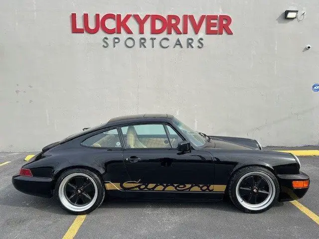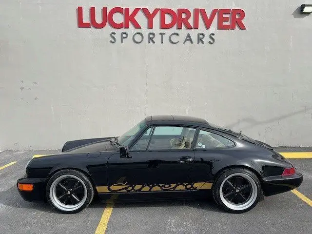 | LuckyDriver Sportcars 1011 SW 69th AVE, Miami, FL 33144 Phone: 305-261-2878 1990 Porsche 911 Carrera 2dr Coupe 4 1990 Porsche 964 Coupe Finished in Black over tan leather interior with Manual transmission and only 81,000 miles. Car is sitting on 18" Fuch type wheels and H&R springs. (Factory wheels available) Very good running car. Cold AC. Solid running engine. Clutch and transmission are working as they should. car has been well kept and cared for. Interior is in very nice shape with no tears or damage to seats or dash. Please feel free to contact us directly with any questions 305-261-2878 - We Ship Worldwide. Buyer is Responsible for Shipping Cost. - Document Fee $495 Base Specifications