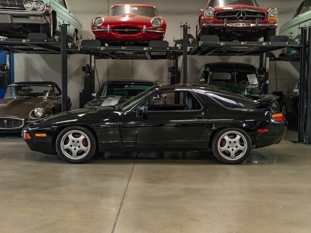 West Coast Classics are proud to present an exceptional example of this very rare 1987 Porsche 928 S4 5.0L 320HP V8 5 speed manual Coupe! Finished in the desirable and beautiful color combination of its extraordinarily rare 'Black' (paint code 700) with its original matching 'Black' (A1 code) leather seats interior! This is a very rare 928 S4, 1 of reportedly only some 434 built in 1987 with a 5 speed manual transmission! This particular example is an extremely striking example in this unique all Black color combination and has obviously always been garaged and has no history of any accidents or damage and has a clean CARFAX report confirming both this history and mileage and comprehensive service history. The car was serviced and maintained for many years at the renown 'German Autotech' of Walnut Creek, CA and has only 104K original and well cared for miles.The original factory 'Black' color paint is in very good condition with only some very minor imperfections noticeable upon close inspection, as is the all original 'Black' leather interior with a rare perfect dash and beautiful original factory carpets and mats. The car drives exactly like a well maintained and serviced Porsche should and must be driven to be fully appreciated and seen to be believed! The engine is extremely strong with no oil leaks, the transmission is very smooth and precise in shifting and the temperature always remains cool. All the options are working as they should including the ice cold air conditioning and power sunroof and windows. The car will also be sold with all of it's original dealer books and manuals.The erstwhile 911 replacement was conceived in the early 70's with no resemblance to any of the marque's previous models. As different from the 911 as it could be with a front mounted water cooled fuel injected V8 connecting to a rear trans-axle and Weissach independent suspension featuring self correcting toe control. An all aluminum V8 with all disc brakes, a novel tilt steering wheel and instrument pod and comprehensively loaded with all the obvious refinements of a luxury GT. A bored 5.0L V8 with twin cam heads and 32 valves replaced the previous 4.7L in 1985 along with anti-lock brakes in '86. The handsome restyled S4 (4th series) arrived in '87 with a reshaped nose, smaller tail and less aero drag and still more power. The GTS was introduced in 1993 and proved to be the final variation of the 928. The V8 was enlarged to 5.4L and put out 345HP. This final incarnation was mildly revised in styling and remains controversial.These cars were all deceptively fast and well built with smooth and refined V8's and were true German supercars that are only today beginning to be recognized outside the Porsche enthusiasts circles as the undervalued supercars which they most certainly are. They have terrific high speed handling abilities with all the obvious solid German craftsmanship. The S4 is proving to be the car the enthusiasts and investors are buying to put away, without the bulky rear fender flares of the GTS and the oil consuming and troublesome 5.4L engine, these are arguably the best of breed as far as most collectors are concerned with essentially the same performance of the last incarnation GTS model but at a fraction of the somewhat rarer GTS cost. There were some 2,421 S4's built in '87 for the USA/Canada and these S4 models are now fast appreciating in price and this particular example with the rare and very low production of reportedly only some 434 of the highly desirable 5 speed manual transmission models being built in 1987!You will look long and hard to find a finer and extremely rare factory loaded and unique example of this exceptionally clean and increasingly collectible and desirable 1987 Porsche 928 5.0L V8 S4 Coupe with a 5 speed manual transmission available anywhere else!