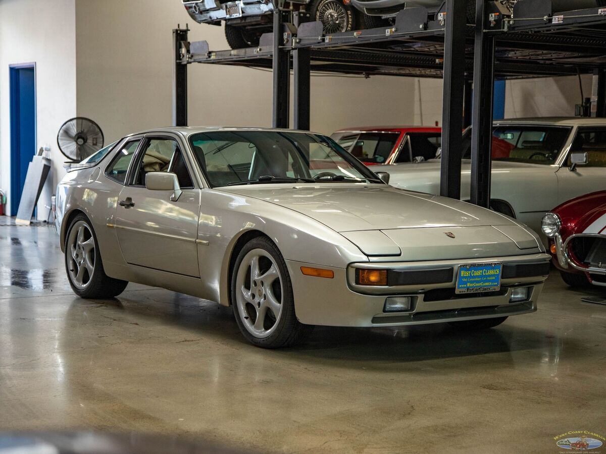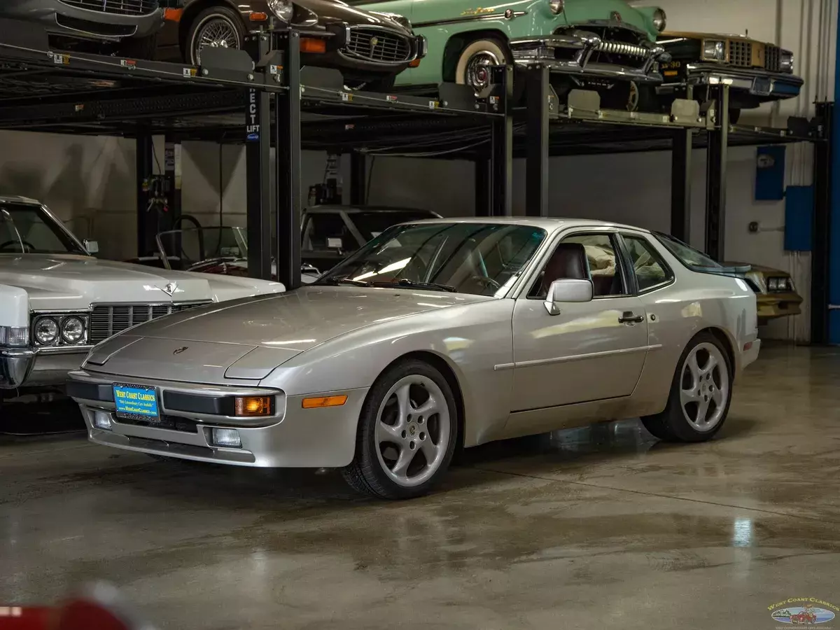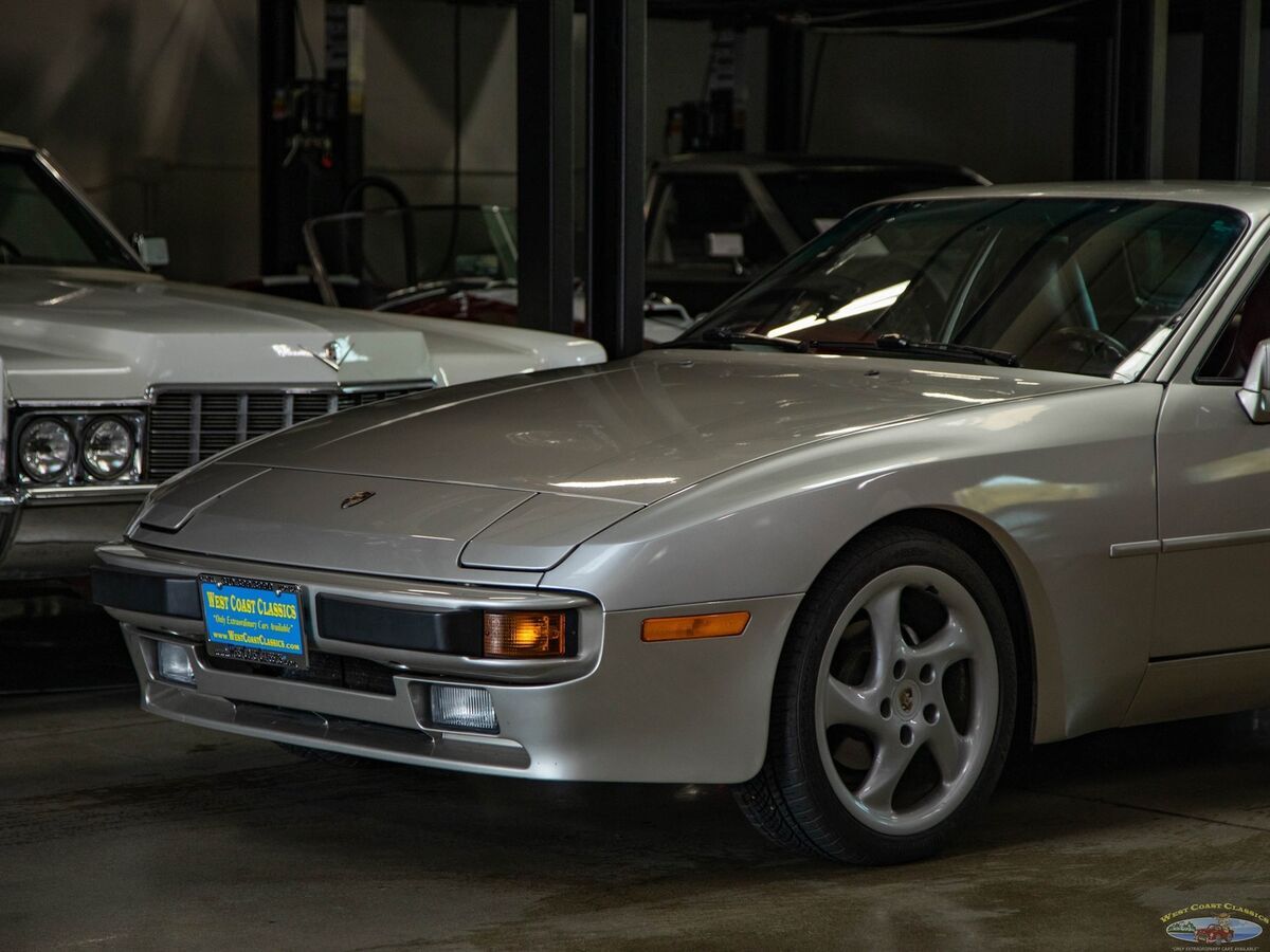 West Coast Classics are proud to present an absolutely exceptional example of this 1987 Porsche 'late model' 944 2.5L 4 cylinder 5 speed manual Coupe! Finished in the beautiful color combination of its original 'Zermatt Silver Metallic' factory paint with its all original 'Burgundy/Maroon' leather interior and purchased with rare factory options including the 5 speed manual transmission, air conditioning, removable large sunroof, desirable 15x7 and 15x8 turbo wheels, stabilizer bars, protective side moldings, leather steering wheel, power windows, power driver seat, rear window wiper, automatic speed control and rear anti roll bar!Just under 27,000 miles5 speedZermatt Silver MetallicNew Continental DWS 06 performance tires with approx. 2,000 miles of wear 225/40/ZR18 front and 265/35/ZR18 rearConverted AC to R134New timing belt in 2023Pristine interiorComes with maintenance kit, owners manuals and custom car coverThe 944 was built by Porsche from 1982-91 and was a very successful model for the German automaker. The car was one of the prestigious 'Car & Driver's' 'Ten Best List' cars from 1983-1985 as was the Turbo when introduced in 1986 and in 1984 'Car & Driver' named the car the 'Best Handling Production Car In America'. In mid-1985, the 944 underwent significant changes which included a newly designed dashboard and door panels, an embedded radio antenna, an upgraded alternator (from 90 amp to 115 amp), an increased oil sump capacity, new front and rear cast alloy control arms and semi-trailing arms, a larger fuel tank, optional heated and powered seats, Porsche HiFi sound system. 1985 model year cars incorporating these changes are sometimes referred to as 1985B, 85.5 or 1985 models and have serial numbers from 45001 and are referred to late model 944's.This particular late model example is serial # 474885 and was obviously always garaged and has no history of any accidents or damage with a clean CARFAX report confirming this history.The original factory 'Zermatt Silver Metallic' factory paint is in exceptional condition and all the options are working as they should. The car drives exactly like a well maintained and serviced Porsche should and must be driven to be fully appreciated and seen to be believed! The engine is extremely strong with no oil leaks, the 5 speed transmission is very smooth shifting and the temperature always remains cool. The car has four virtually new tires.You will surely look long and hard to find a finer and extremely rare factory loaded and unique example of this exceptionally clean and increasingly collectible and desirable Porsche 944 5 speed manual Coupe with all original paint and only 26K original miles available anywhere else.