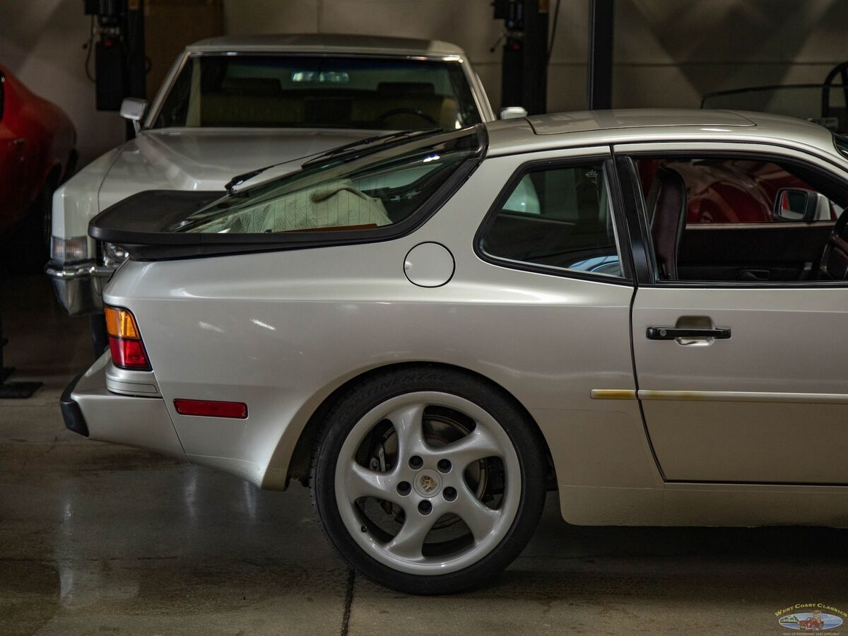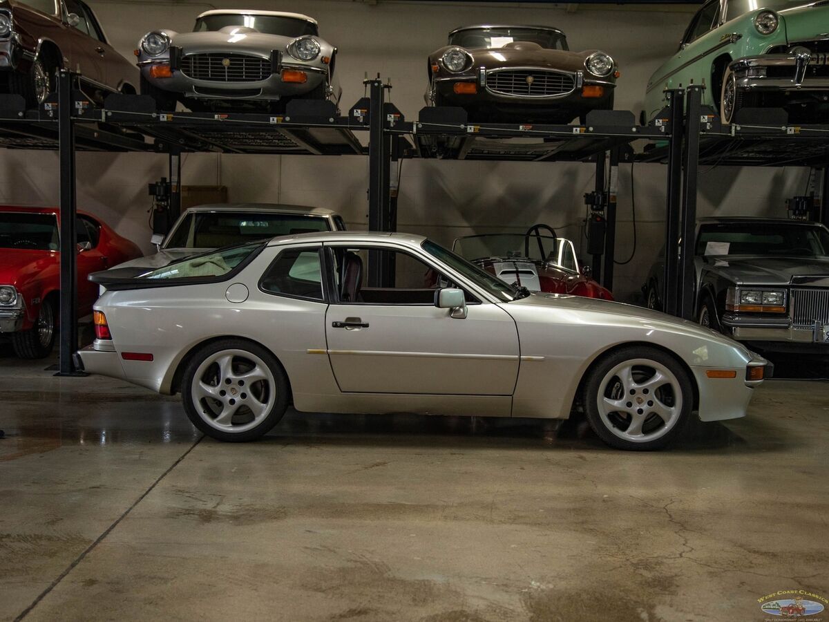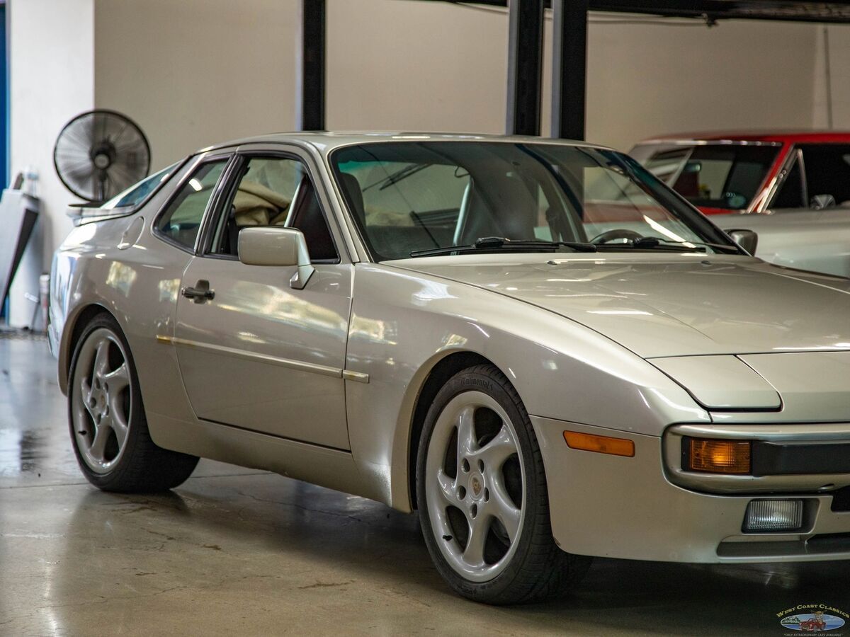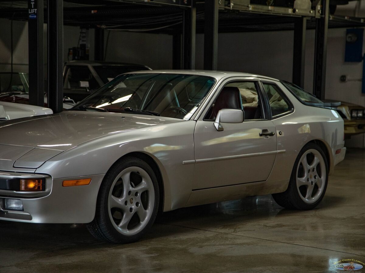West Coast Classics are proud to present an absolutely exceptional example of this 1987 Porsche 'late model' 944 2.5L 4 cylinder 5 speed manual Coupe! Finished in the beautiful color combination of its original 'Zermatt Silver Metallic' factory paint with its all original 'Burgundy/Maroon' leather interior and purchased with rare factory options including the 5 speed manual transmission, air conditioning, removable large sunroof, desirable 15x7 and 15x8 turbo wheels, stabilizer bars, protective side moldings, leather steering wheel, power windows, power driver seat, rear window wiper, automatic speed control and rear anti roll bar!Just under 27,000 miles5 speedZermatt Silver MetallicNew Continental DWS 06 performance tires with approx. 2,000 miles of wear 225/40/ZR18 front and 265/35/ZR18 rearConverted AC to R134New timing belt in 2023Pristine interiorComes with maintenance kit, owners manuals and custom car coverThe 944 was built by Porsche from 1982-91 and was a very successful model for the German automaker. The car was one of the prestigious 'Car & Driver's' 'Ten Best List' cars from 1983-1985 as was the Turbo when introduced in 1986 and in 1984 'Car & Driver' named the car the 'Best Handling Production Car In America'. In mid-1985, the 944 underwent significant changes which included a newly designed dashboard and door panels, an embedded radio antenna, an upgraded alternator (from 90 amp to 115 amp), an increased oil sump capacity, new front and rear cast alloy control arms and semi-trailing arms, a larger fuel tank, optional heated and powered seats, Porsche HiFi sound system. 1985 model year cars incorporating these changes are sometimes referred to as 1985B, 85.5 or 1985 models and have serial numbers from 45001 and are referred to late model 944's.This particular late model example is serial # 474885 and was obviously always garaged and has no history of any accidents or damage with a clean CARFAX report confirming this history.The original factory 'Zermatt Silver Metallic' factory paint is in exceptional condition and all the options are working as they should. The car drives exactly like a well maintained and serviced Porsche should and must be driven to be fully appreciated and seen to be believed! The engine is extremely strong with no oil leaks, the 5 speed transmission is very smooth shifting and the temperature always remains cool. The car has four virtually new tires.You will surely look long and hard to find a finer and extremely rare factory loaded and unique example of this exceptionally clean and increasingly collectible and desirable Porsche 944 5 speed manual Coupe with all original paint and only 26K original miles available anywhere else.