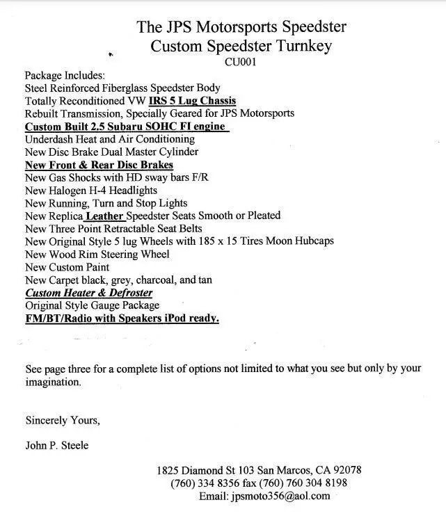 The build starts with steel reinforced fiberglass body being installed on a totally reconditioned VW IRS 5-lug chassis. The Subaru 2.5-liter SOHC fuel injected engine is installed and mated to a rebuilt transmission that is specially geared for JPS Motorsports.
