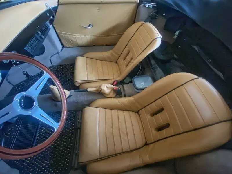 4 wheel disc brakes with dual master cylinder bring this Speedster to a halt in a hurry! Inside replica Speedster seats are upholstered in leather with 3-point retractable seat belts that keep you planted in the seat, even on the most twisty of turns! Original style gauges are paired with a modern FM radio with Bluetooth for a nice blend of old and new.