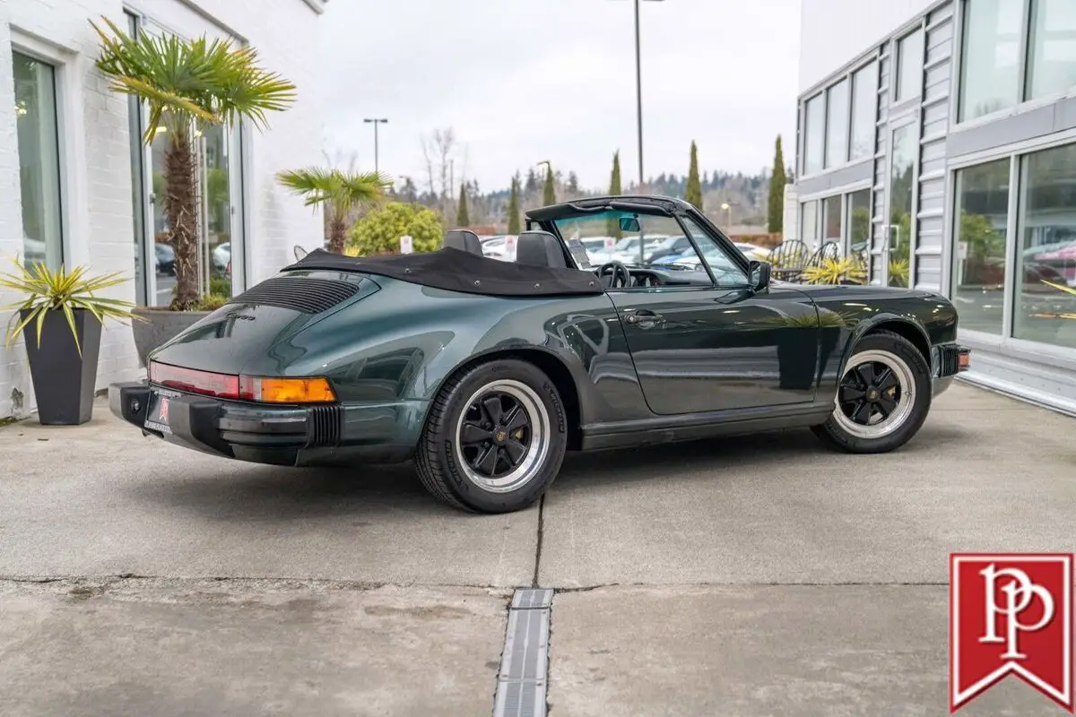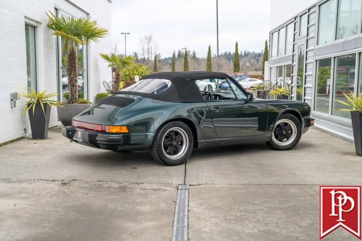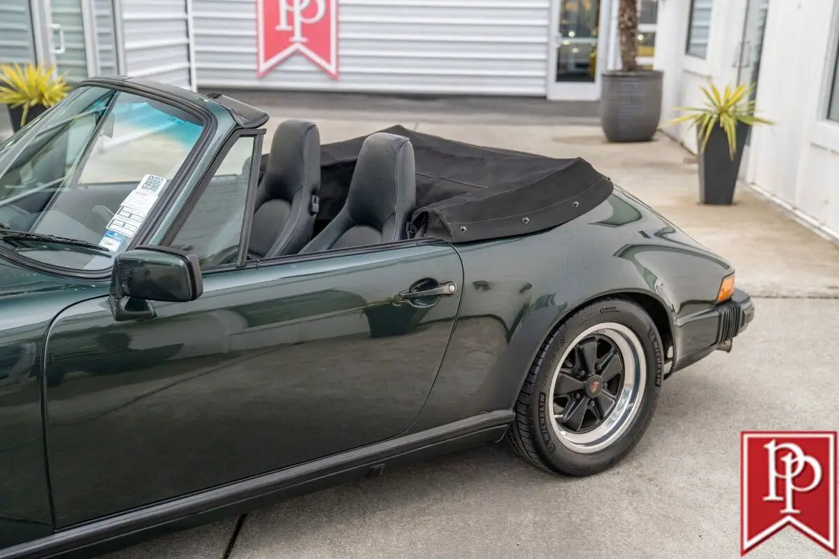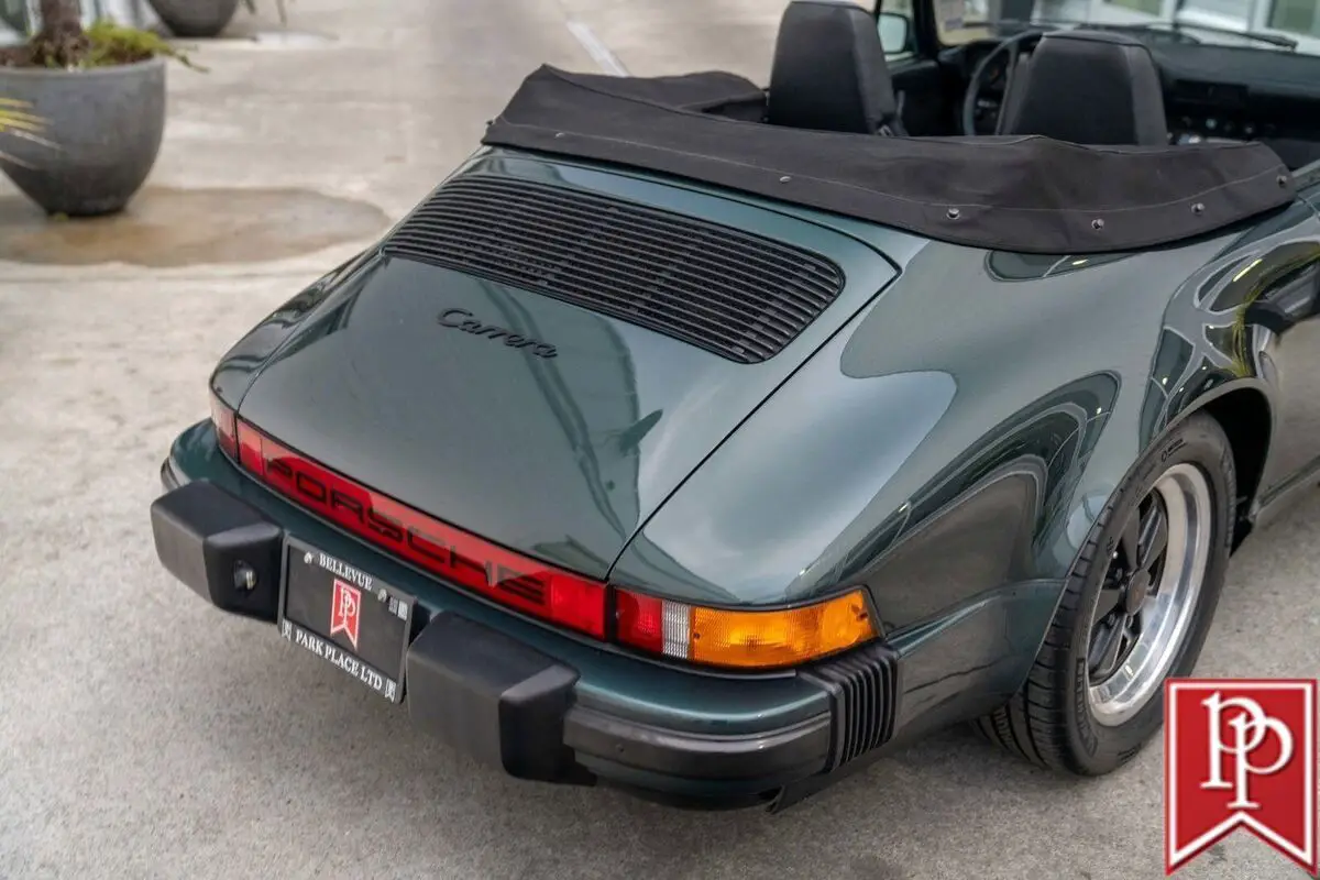 Call Toll Free 877-855-1030 - 1985 Porsche 911 Carrera Cabriolet This 1985 Carrera Cabriolet is finished in a unique color combination of Moss Green Metallic Over Black Leather, with a black cloth soft top. Sold new on February 28th 1985 at D-Patrick Imports in Evansville, Indiana, the car has been under the care of the consignor since purchasing the car here in 2009. When this 911 was acquired by the consignor, it showed 94,447 miles and in the last 16 years, has seen the addition of just 19,865 or just over 1,200 miles per year. 1985 was the second year of the “Carrera” which was an update on the 911 SC which had been on sale from 1978 to 1983. The deep metallic green paint on this car is in excellent condition and, as a 3.2 Carrera, is paired with black trim on the windows, rear grille and badging. Additionally, black center 16-inch Fuchs forged wheels are fitted with polished lips that are a hallmark feature of Porsche from this era. From the factory, this car was optioned with black “full leather” interior which means that in addition to the seats, the door cards and part of the dash are leather wrapped. The large 4-spoke steering wheel frames Porsche’s famous 5-gauge dashboard with a large central tachometer staring right back at you. This car was optioned with cruise control which makes it a great road trip vehicle, and a more modern Alpine head unit gives CD compatibility. As the 911 was a premium product in its day, it came standard with nice features like power windows, air conditioning and a leather wrapped steering wheel which are all present on this car. Under the hood, the 911 Carrera is powered by a 3.2-liter flat-six engine that delivers 228 horsepower and 209 lb-ft of torque. These notoriously stout engines are a revised variant of the 3.0-liter unit in the 911 SC but the additional displacement, paired with a Bosch Motronic fuel injection system make them much smoother and more pleasant to use every day. This engine is then paired to a 915 5-speed transaxle which was in its final year of production for Porsche. The 915 had been around for decades and is preferred by many enthusiasts to the later G50 because of its light weight and positive feeling cable-actuated clutch. From behind the wheel, these Carreras are known for their lively and communicative steering feel and, although the power numbers don’t sound hugely impressive today, these are light cars and offer plenty of performance. People frequently say that there is no driving experience like a Porsche 911 and especially with these older cars, it is true. Between the unique rear-engine placement, the smooth flat-6 engine and the light communicative steering, the 911 driving experience is always a joy whether it be just driving around town, or hitting your favorite backroad. This 1985 car is a great example offered in an interesting color combination and coming out of long-term ownership. Watch the attached walkaround and driving video, and view undercarriage photos here: photos/parkplaceltd/albums877-855-10303947286 Additional Information Tonneau Cover Books and Manuals Warranty and Maintenance Booklet w/Stamps Window Sticker Service Invoices From 2002 to Present Tool Kit and Air Compressor Standard Features 3.2-Liter Flat 6 228 Horsepower 209 Lb-Ft of Torque 0-60 MPH in 6.1 Seconds | Top Speed of 146 MPH 5-Speed Manual Transmission 4-Wheel Disc Brakes Manually Operated Soft Top Fog Lamps Power Mirrors Intermittent Wipers Central Locking Cruise Control Power Antenna Full Cockpit Tonneau Cover Space Saver Spare Tire 2+2 Seating Air Conditioning Heat Exchangers Call David B. toll Free 877-855-1030 to discuss or Click Buy it Now to secure it right away! There are no fees from eBay. We don't charge out of State Cash buyers any fees, no buyers or sellers fees, no taxes or license fees, just a $200.00 document fee and the agreed sales price. That is it, very simple. watch?v=VaH4uhFZ9as Buy with confidence on eBay.