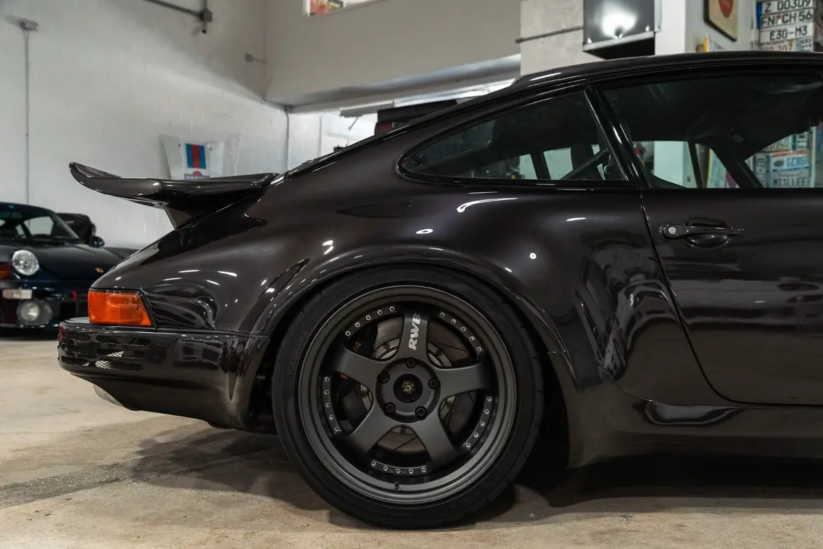 Starting with the exterior the condition of this 930 is very good and presents nicly with only minor imperfects as to be expected with the age of the vehicle, the guards red paint covering the body presents nicely. The four 17 inch Fikse FM10 show very nicely with no curbrash or bends, a set of Nitto NT05 tires wrap the wheels in sizes 235/40 front and 315/35 rear. The interior has been kept in great condition showing minimal wear, the dash has no cracks and the suede covering the seats is in great condition with no excessive wear. Mechanically everything is tight and feels very fresh, all suspension feels tight yet compliant, the engine pulls strongly all the way through the revrange and the transmission shifts through each gear precisely and smoothly.