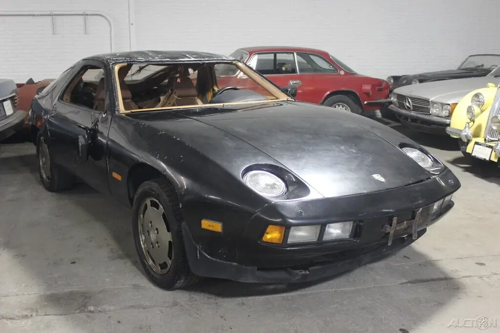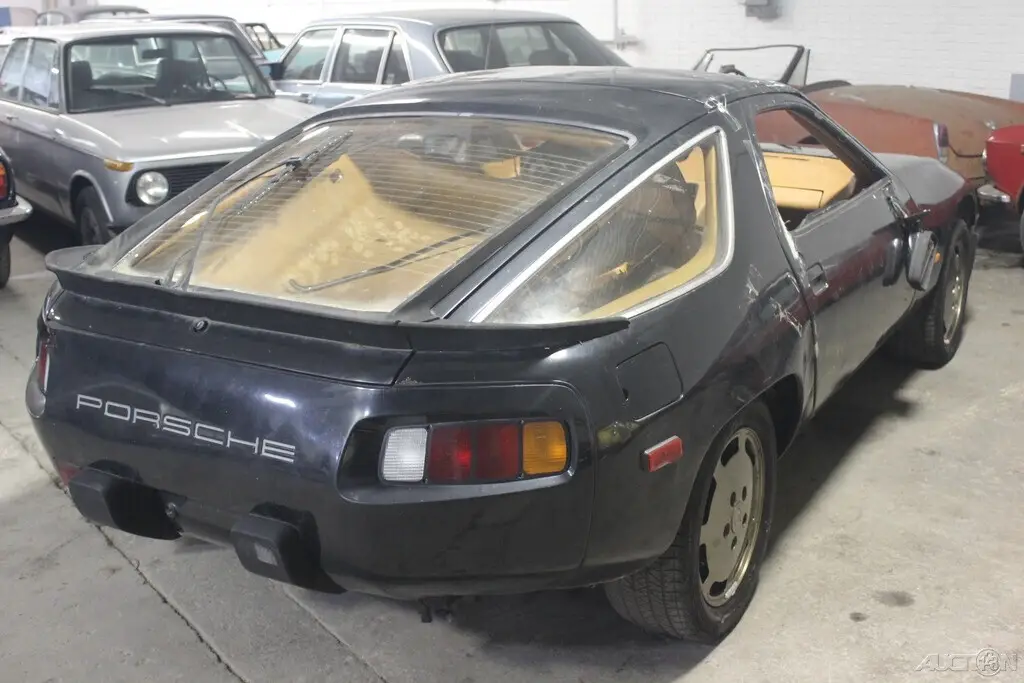 A 1979 Porsche 928 Euro Coupe. A desirable black with a tan leather interior. 5 speed manual transmission. 113,000 km (70K miles) The car was sitting in storage many years. Paint is original. An excellent and straight body but there are some dents mainly on the roof, and some by the headlight and the passenger door as you can see in the pictures. Broken windshield and passenger door glass. The interior is all original and is all there but showing its age. Passenger side door panel is off, but it comes with it. Mechanically the car does not run but the engine turns over freely. Stainless steel exhaust. Comes with clean and clear title. A rare and excellent original car needin
