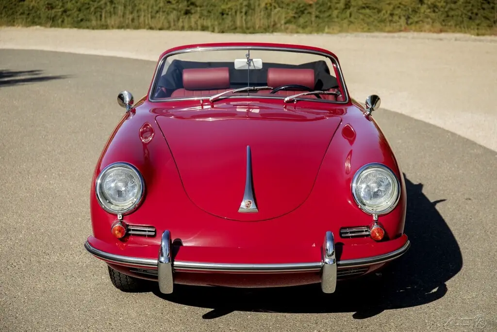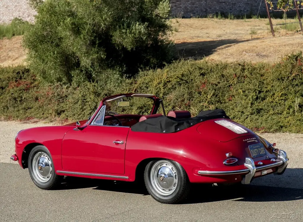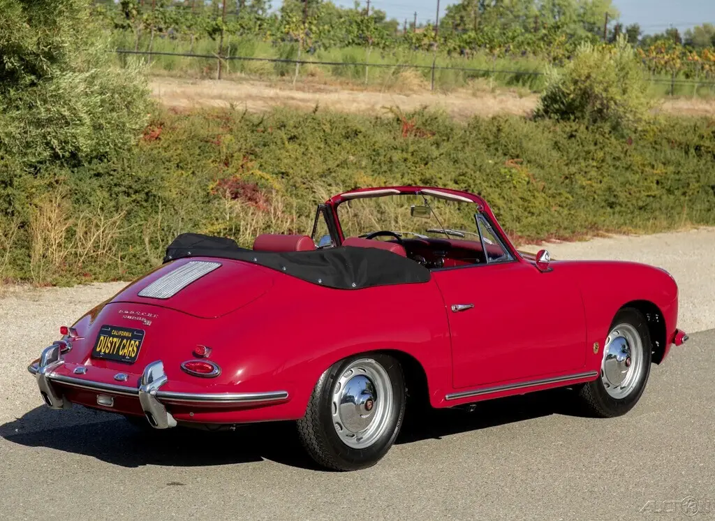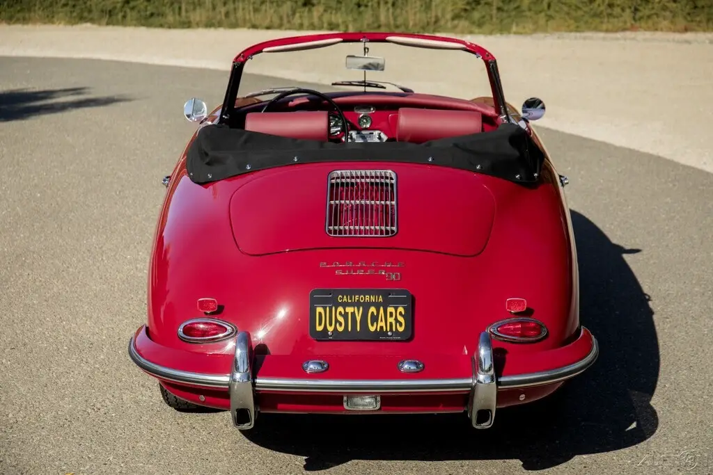 1960 Porsche 356b T5 Super 90 Cabriolet: Factory luggage; leather interior; Becker Mexico radio; leather headrests; clock; numbers-matching engine, transmission, doors, hood, decklid; extra hardtop. We purchased this car 6 years ago and it has undergone a complete restoration: new floor metal and longitudinals; bare-metal repaint in the original Ruby Red; new original Red Leather seats and headrests; new German weave carpet; new soft-top; rebuilt engine; new clutch; rebuilt carburetors; new brakes; new tires; all new body rubbers and seals; etc. Too many details to list. The T5 Super 90 Cabriolet is a rare and desirable model, and this in an investment-grade example with all brand-new work. Porsche factory Kardex included. Please study the pictures carefully rather than requesting descriptions. Please complete any inspections or ask any questions prior to bidding or committing to buy the car. Thanks for the interest!