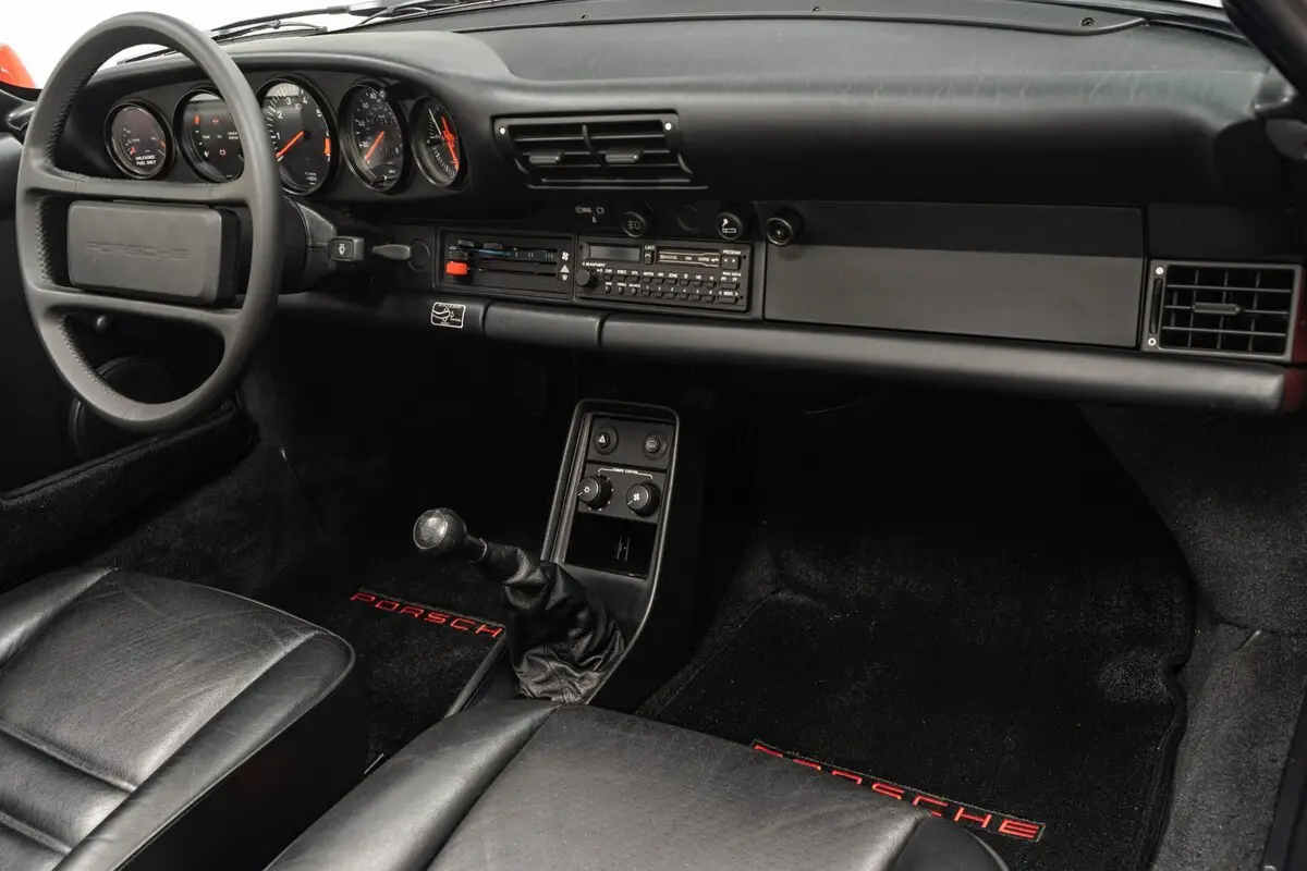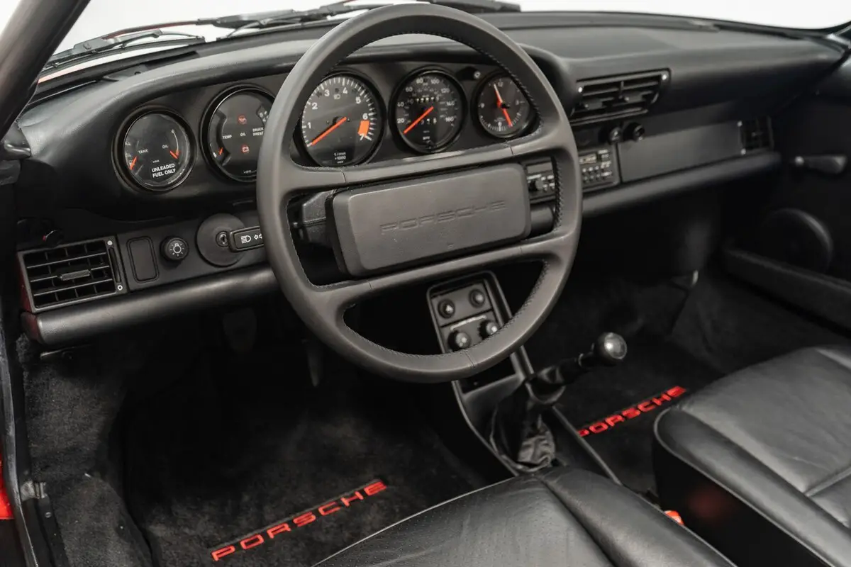We have just added to our extensive exotic car inventory a beautiful 1989 Porsche 911 Speedster in Guards Red over Black leather and only 12,879 miles. This Speedster is loaded with: 3.2 Liter flat 6, 5 speed manual transmission, Turbo wide body with larger wheels and brakes, 8 way power seats, heated driver seat, heated passenger seat, shorter shift lever, steering wheel with raised hub, rear seat area storage bins, cruise control, stereo with amplifier system, air conditioning, Blaupunkt Reno cassette stereo and much more.