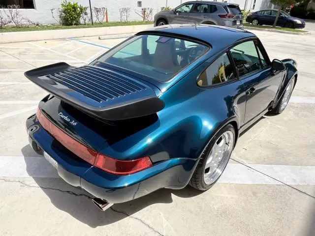 994 Porsche 3.6 Turbo in rare Amazon Green over Tan interior.