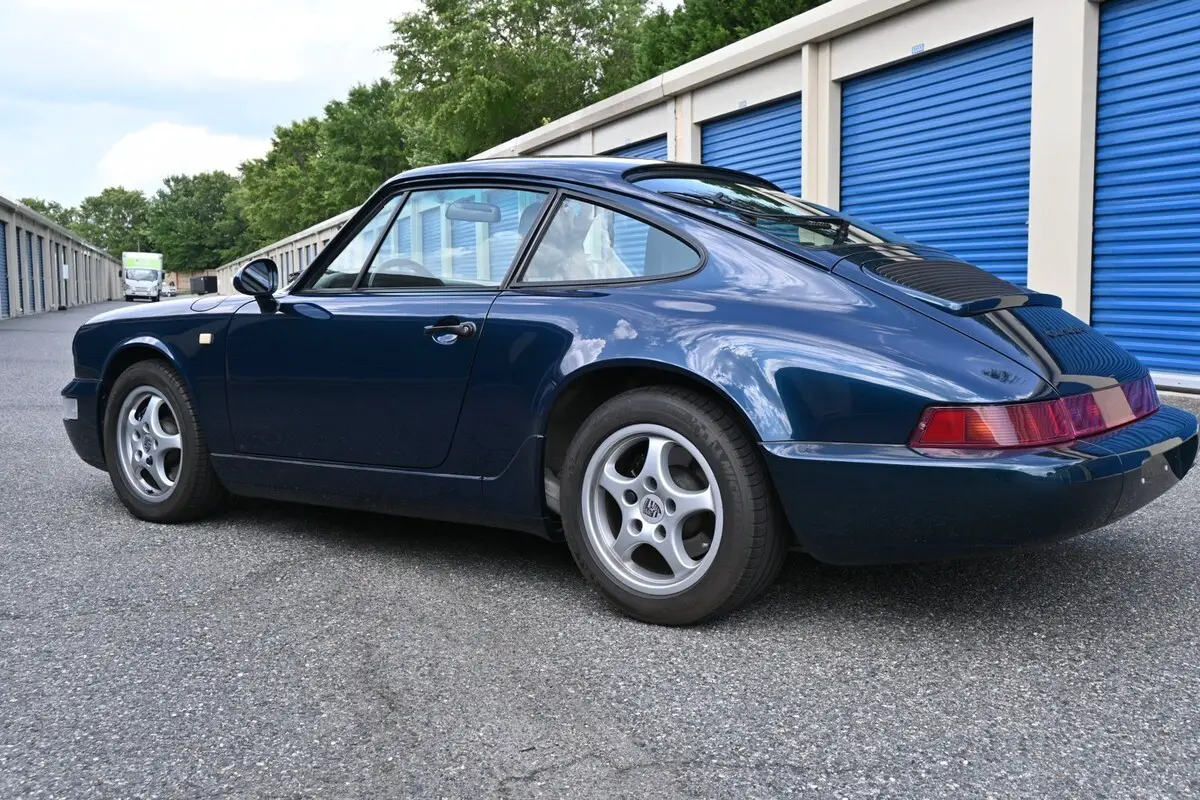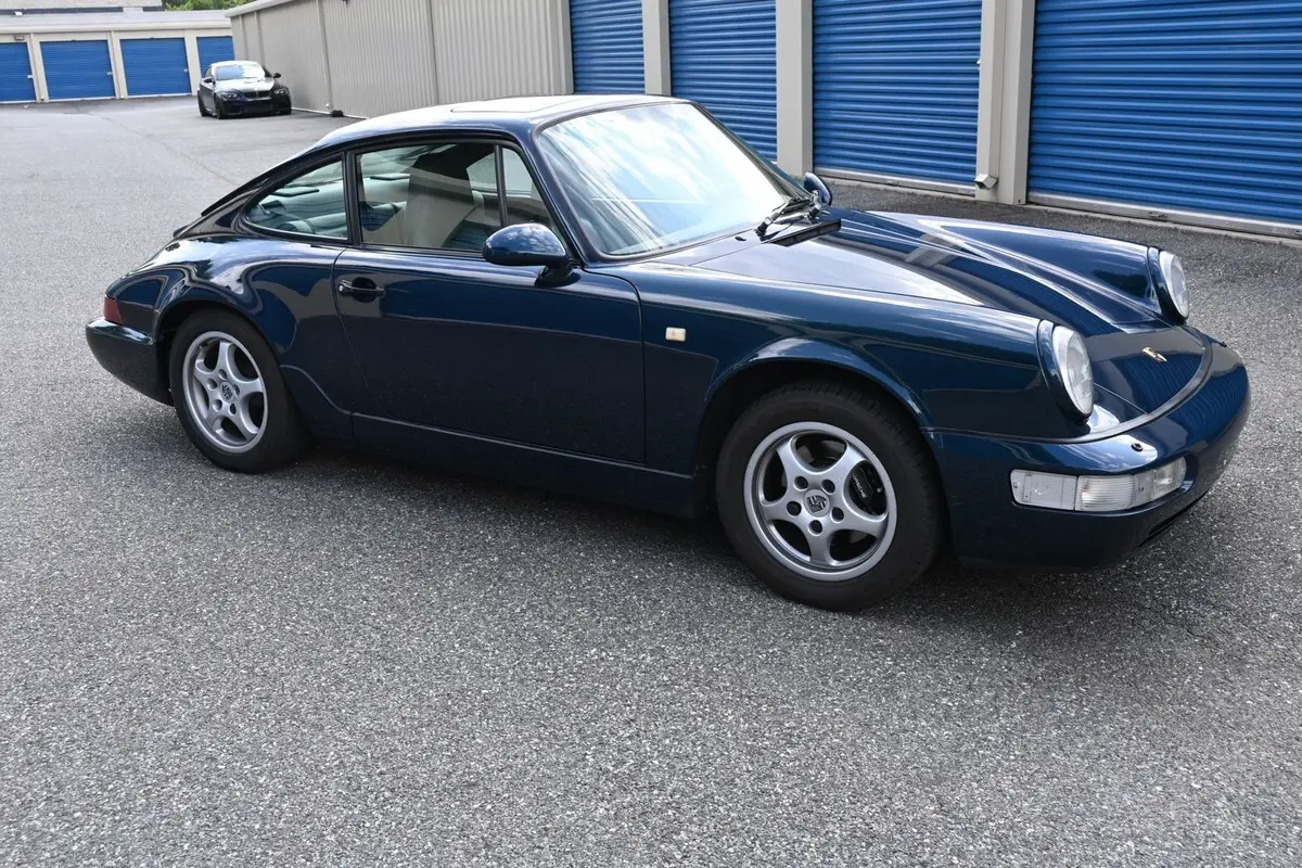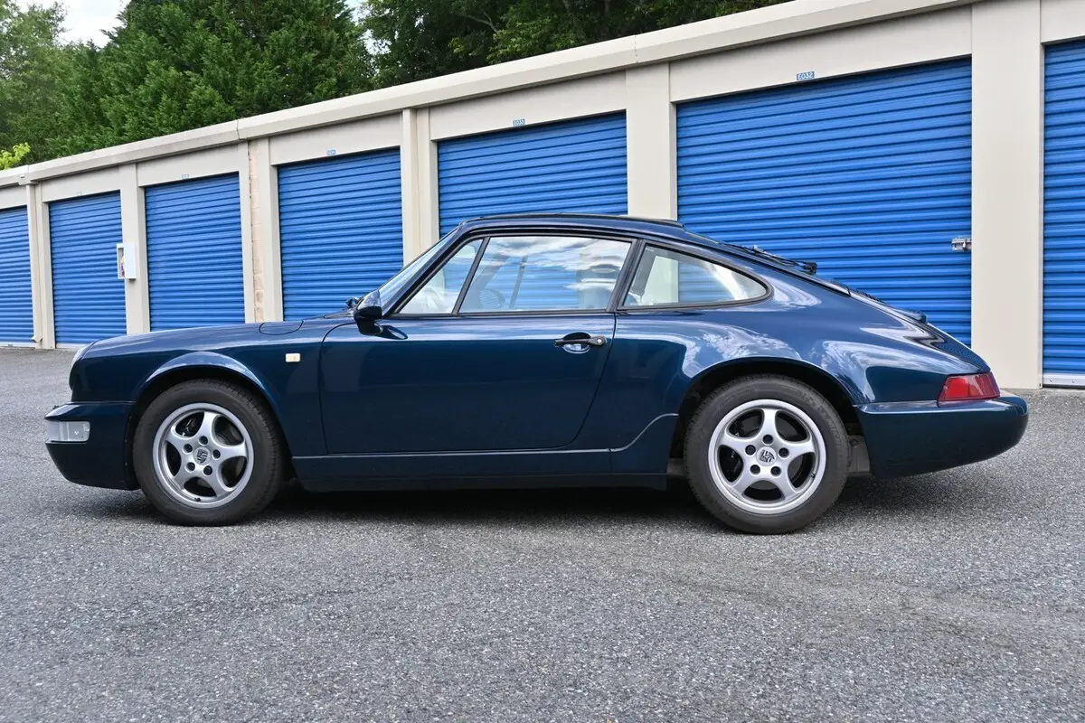 This German-market 1992 Porsche 911 Carrera 4 coupe was specified by the original owner in Amazon Green Metallic over a Carrera Grey special leather interior. The car remained in Germany until 2007 before spending time in Norway and was legally imported to the US in 2024. Showing 55k kilometers (~34k miles), it is powered by a 3.6-liter flat-six that drives all four wheels through a five-speed manual transaxle and features 16” Cup wheels, a computer-controlled limited-slip differential, a speed-activated rear spoiler, a sunroof, heated and power-adjustable front seats, a CDR-22 stereo, and air conditioning. This 964 C4 coupe is offered with spare parts, manufacturer’s literature, and a clean title. The VIN is WP0ZZZ96ZNS402711.