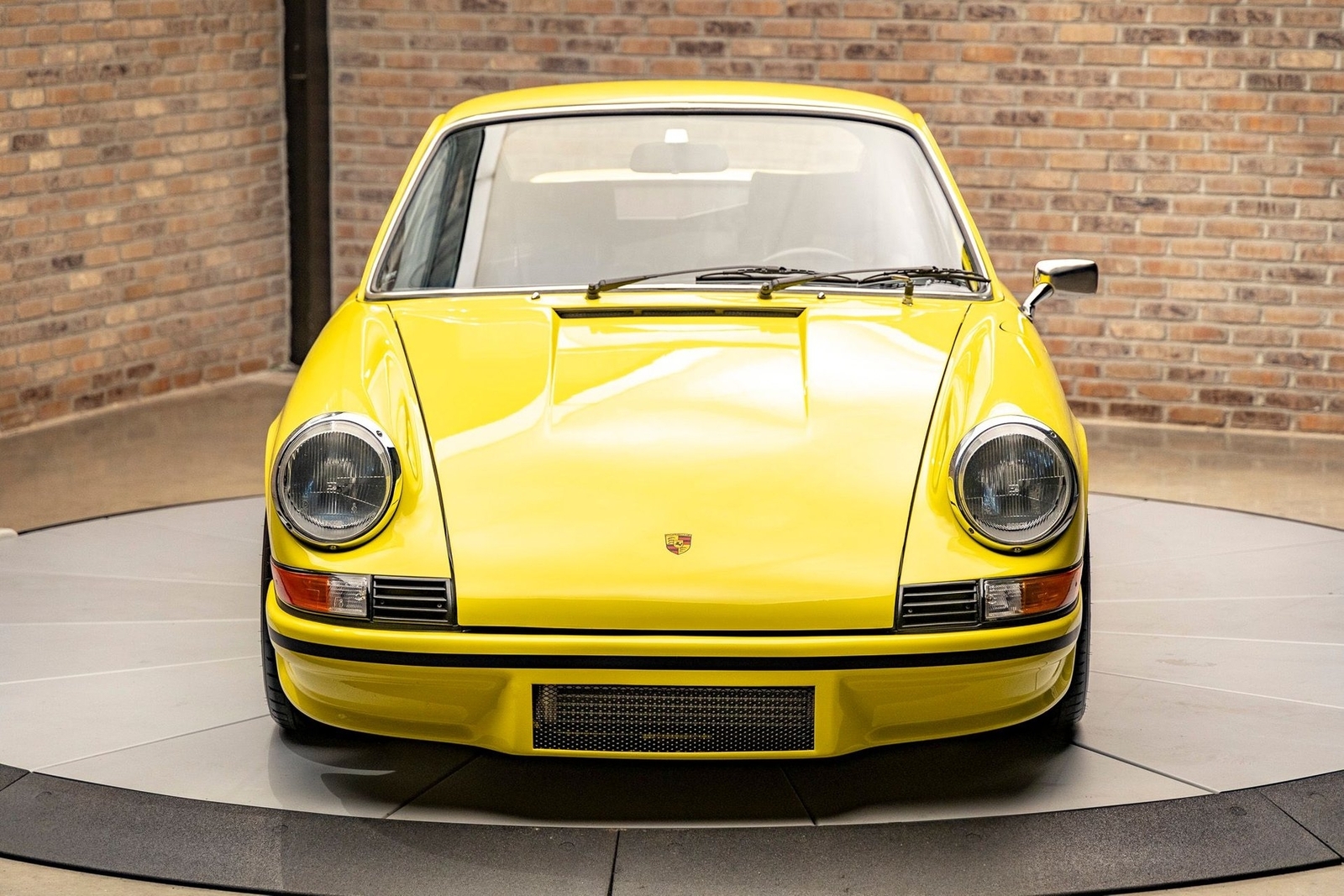 Dressed in the stunning Talbot Yellow, this 911S captivates with RS Lightweight carpet, door panels, and iconic RS bumpers. A sporty 4-point cage with harness and specially fitted sport seats make it ready to tackle any twisty road. The 15" Fuchs wheels, complete with silver-painted pedals, and the iconic Bosch H4 headlights emphasize its classic look, while the large front-mount oil cooler and aluminum front "S" calipers ensure it's as functional as it is beautiful.