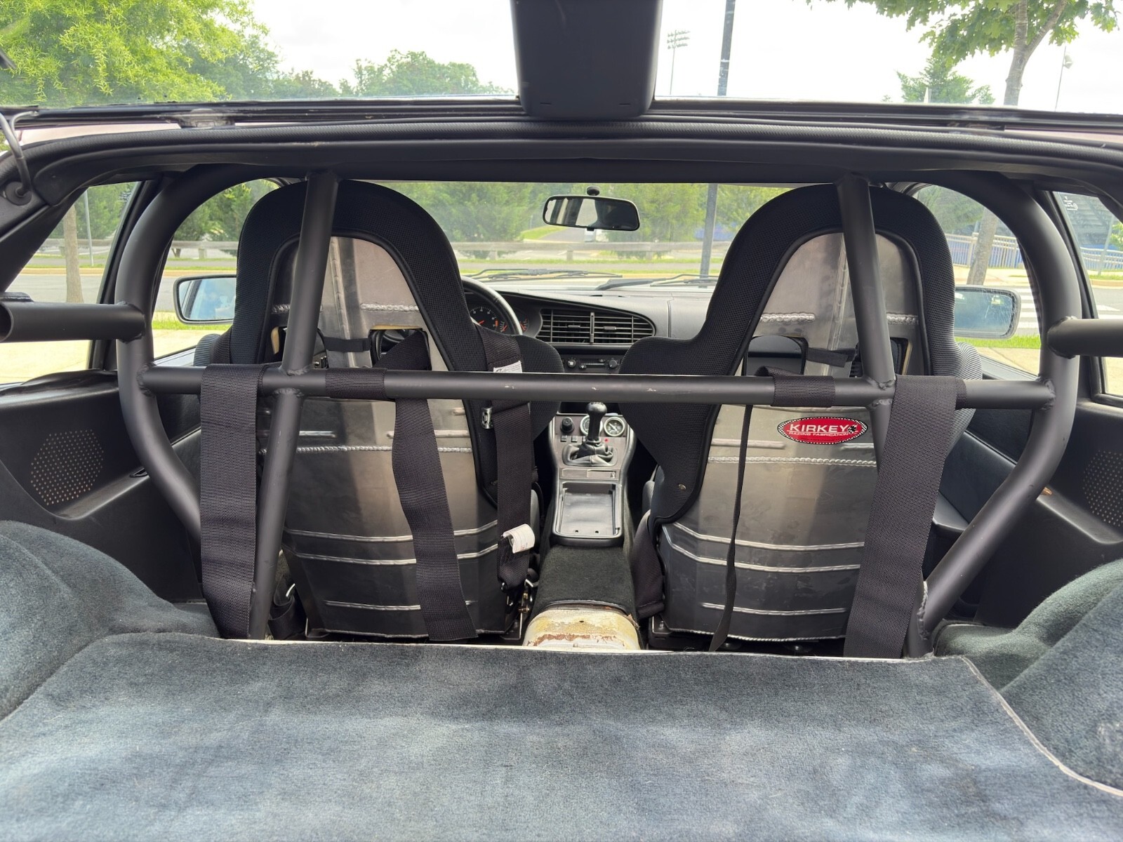 Prepared as a track car. Recent engine work includes used short block, ported and polished head, 52 lbs injectors, Cometic head gasket, ARP head studs, stiffer valve springs, KKK 26-8 turbo, manual boost control, Tial waste gate, Forge blow off valve. Head work by RPR, Michael Mount and dyno tuned on a Focus 9 DME. Mods include bolt in roll bar, Kirkey seats, 6 point harnesses, high strung control arms, Koni coil overs front and back, Racer’s Edge camber plates, torsion bar delete, Delrin bushings, Weltmeister Front Sway Bar, Turbo S rear sway bar, short shift kit, replaced fuel and vacuum lines, and AC delete. Factory LSD, torque tube rebuilt by Dark Horse, straight piped, rebuilt calipers and regular maintenance and newer clutch. Odometer says 123K but the gear was broken when I bought the car 14 years ago and subsequently replaced.