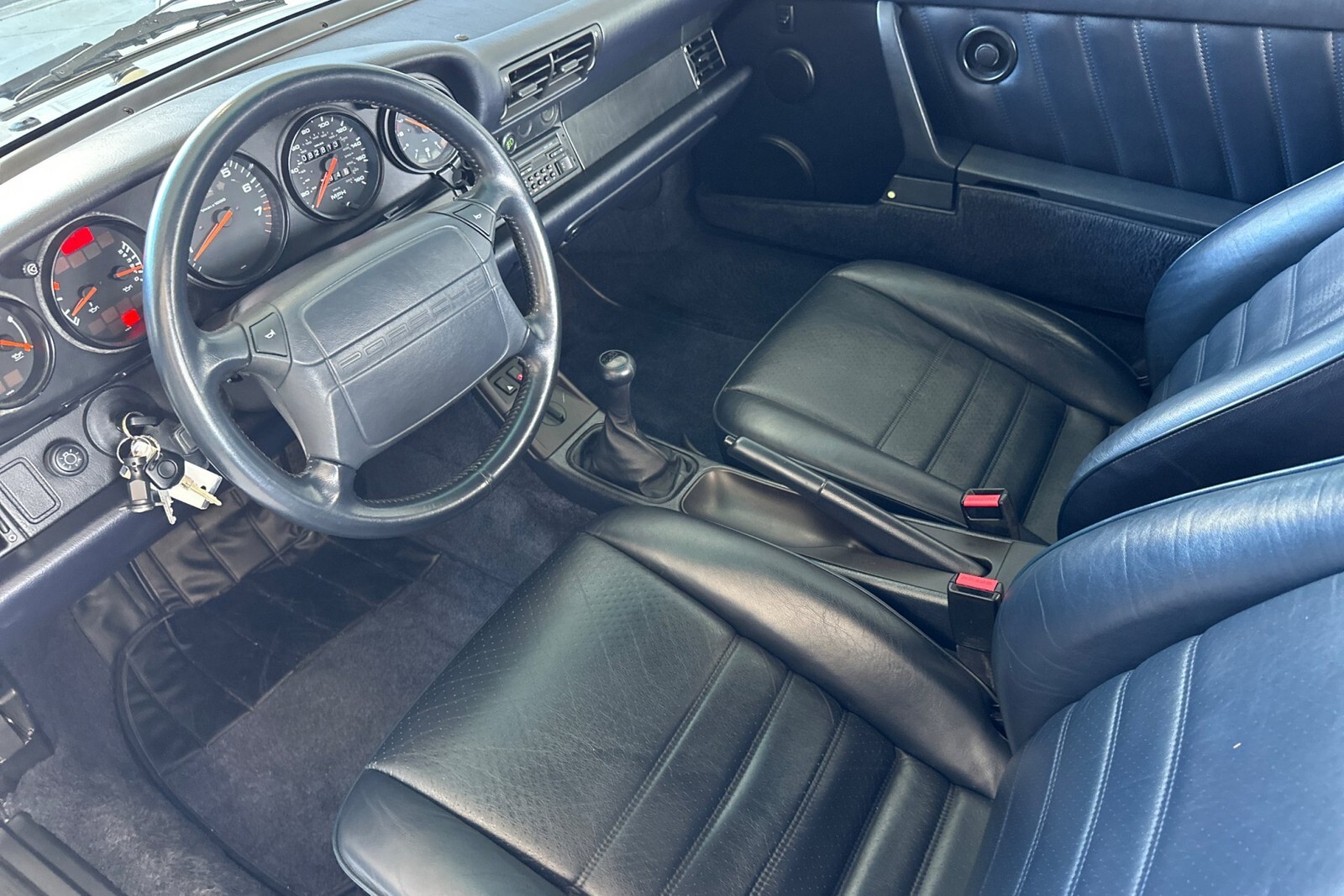 Interior trim partial leather Marine Blue, seats leather Marine BlueGrand Prix WhiteComfort seat, left with full electrical adjustment (8-ways)Wheel caps with colored Porsche crestExperience classic Porsche performance with this 1992 Porsche 911 Carrera 2dr Convertible. a legendary 3.6L H6 engine delivering 247hp and paired with a 5-speed manual transmission, this rear-wheel-drive icon promises a pure driving experience. The power convertible roof lets you enjoy open-air cruising at your command, while features like aluminum alloy wheels, leather upholstery, power windows, power door locks, and power steering add comfort and style. Enjoy additional amenities including automatic climate control, cruise control, front air conditioning, heated and power-adjustable side mirrors, front fog lights, rear spoiler, and an AM/FM radio with cassette. 4-wheel ABS and dual front airbags provide added peace of mind. Own a piece of automotive history that blends timeless design with exhilarating performance-contact us today to schedule a test drive. Plus government fees and taxes, any finance charges, any dealer document processing charge, any electronic filing charge, and any emission testing charge. Vehicles may be equipped with optional dealer installed equipment. Please contact dealer for final price.