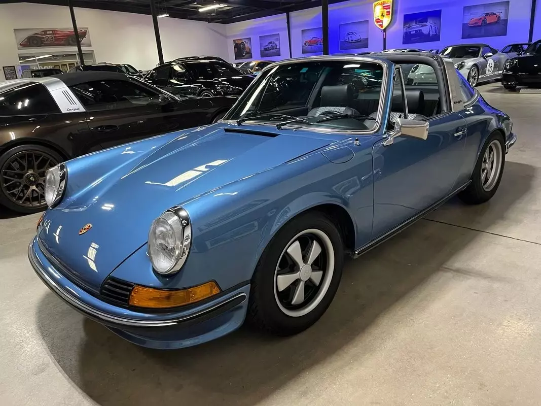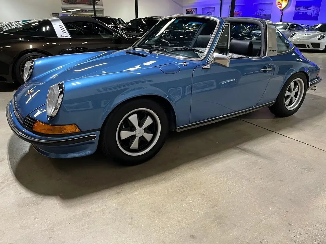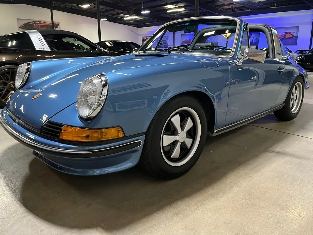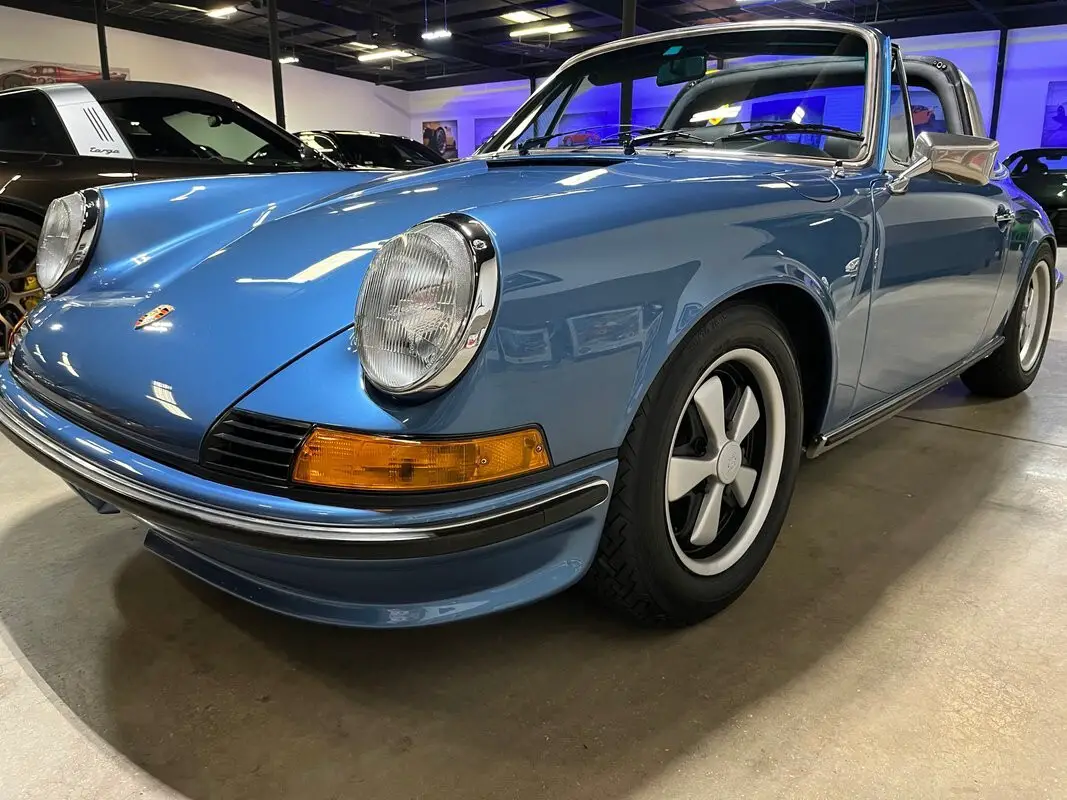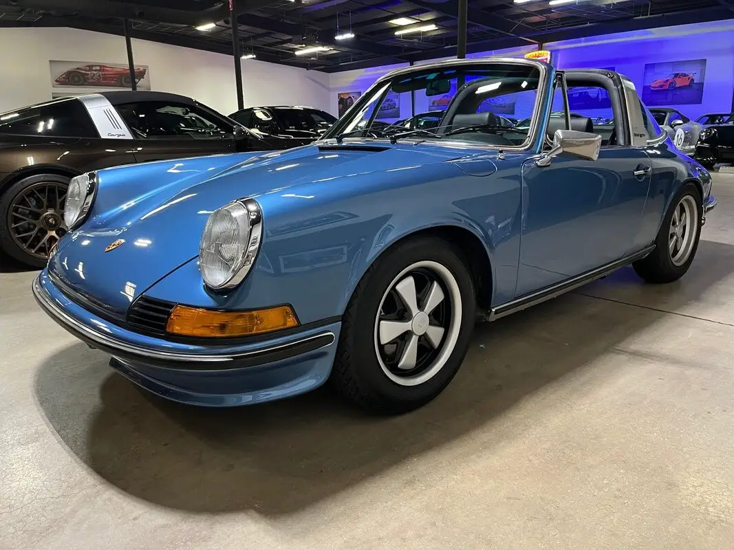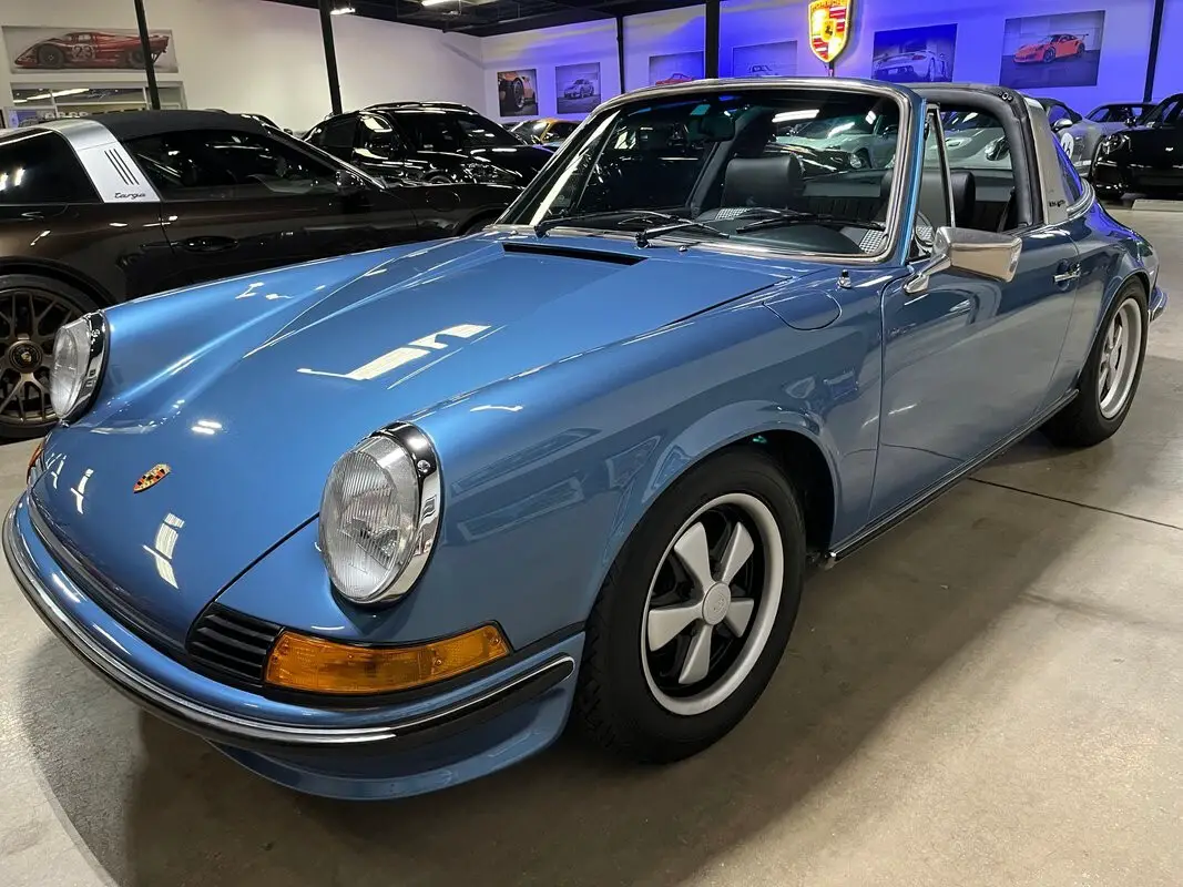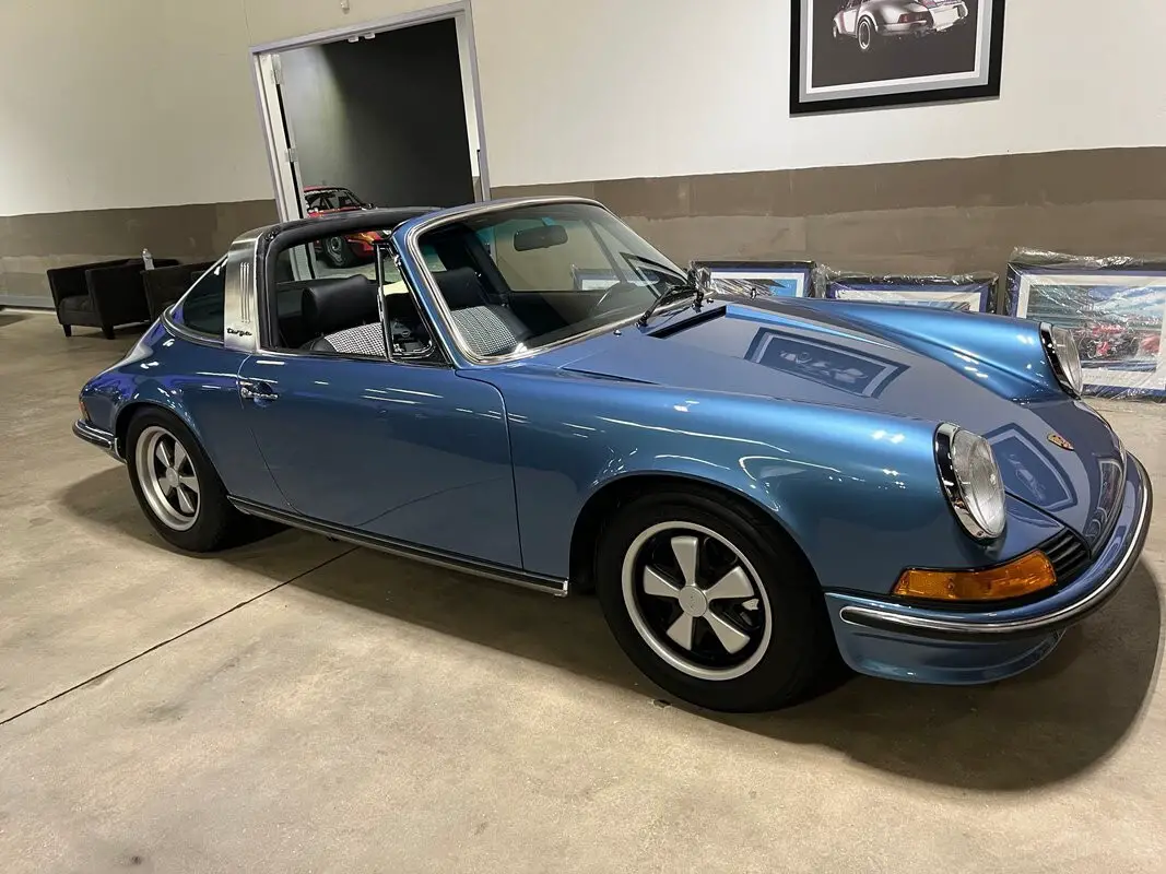 Restored Original Gemini Blue Metallic over Black Leather with Houndstooth 1973.5 911T CIS 5-Speed Manual Targa
