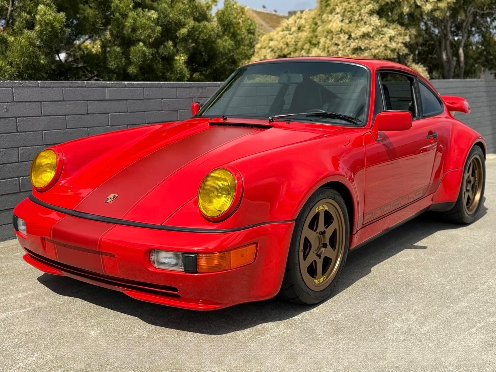 1989 Porsche 964 Coupe Wide Body Conversion PLEASE WATCH THE VIDEO HERE https://youtu.be/4XTub8YgyJc?si=5wiTot8PADfldO-L For sale is a 1989 PORSCHE 964 Outlaw with a Wide Body fiberglass conversion. This vehicle is unlike anything on the market. It was owned and built by a true Porsche enthusiast. This Porsche is fully serviced, runs excellent, super tight and well-maintained. Motor Rebuilt & Sealed in by Stevenson Imports (Porsche Dealer) in Littleton CO. It had 158,757 on it when done. Now it has around 204k miles. After that time it was maintained by Rennsport KC. Plugs, Distributor, Wires, etc all replaced. Shifter linkage redone. All fuel lines in the engine compartment were replaced in the last year, along with a new fuel pump. Lots of records going back. I have a massive binder full of records. H&R Coilovers installed 2019. Stripes are vinyl, MoMo wheels without spacers, Fabspeed exhaust. A/C converted to 134a. If it needed something, it was done with an open checkbook. It’s finishing its original guard red over a black interior. The interior of this vehicle is in great condition. The exterior is in good condition. Paints deep and glossy. Clean title/clean carfax. Mechanically it runs and drives excellent. It’s powered by its original 3.6L mated with the g50 transmission. The ride is smooth and sporty. This ultimate driving machine handles like it's on rails! Transmission shifts smoothly through all gears. All suspension and steering components feel just fine. Tires have good thread. Clutch and brake feel good. Like I said it comes with more paperwork then you’ll be able to read! Please watch the video to see the entire car. We are located at 2240 Del Monte Ave Monterey 93940. My number is 831-920-8216. GO TO DODIAUTO.COM for over 250 photos. And make sure to watch the video. *****Although every effort is made to present accurate and reliable vehicle information, use of this information is voluntary, and should only be deemed reliable after an independent review of its accuracy, completeness, and timeliness.It is the sole responsibility of the customer to verify the existence of options, accessories and the vehicle condition before time of sale. Any and all differences must be addressed prior to time