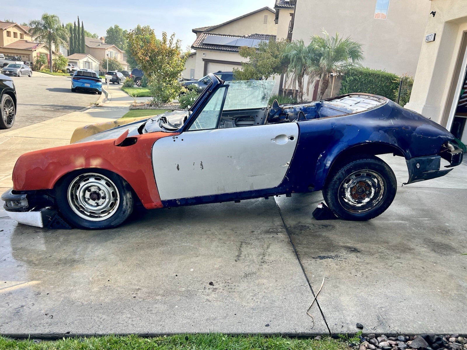 Porsche 911 SC: CoupT, Targa, Cabriolet & RS Model Years 1978-1983 project, rolling chassis1978 Porsche 911 targa / convertibleComes with 2 convertible top frames 1 with frame and cloth convertible topRolling chassisClean floor pan NO RUST HOLESMetal fenderMetal quarter panelsMetal front and rear bumpersHood and doors are original to a Porsche 911Doors have glass in themSolid chassisSOLD AS IS