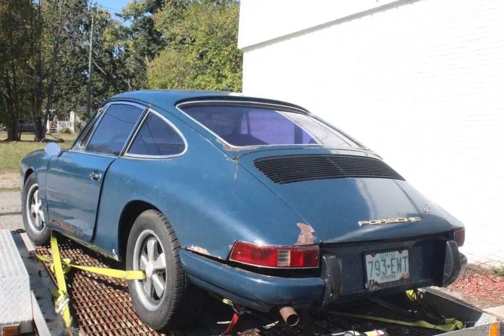 1966 Porsche 912 3 Gauge Karmann Coupe, very desirable Aga Blue with Black interior, 73K Original miles. A very nice and straight body, unfortunately the car has lots of rust due to sitting long time. An original interior shows well, missing the dashboard cover. Mechanically the car does not run due to sitting, last time was on the road in 1987. Fitted with 15-inch desirable Fuchs! Can’t open the font trunk. Comes with clean and clear title. A very original early Porsche 912 Coupe needing full restoration. Please message or call Frank Sajjad at 2166452100. (We can help to make arrange