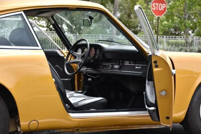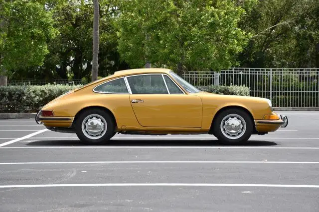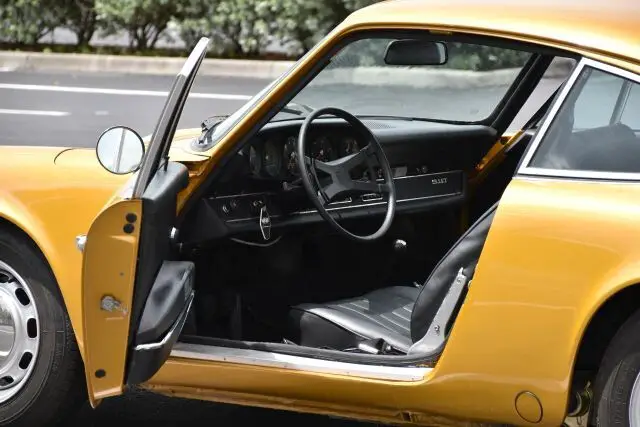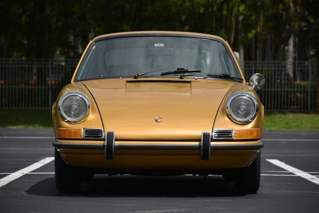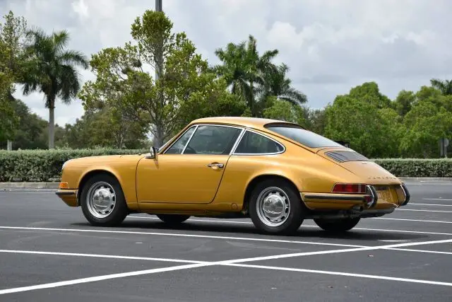 The car retains its factory-correct Gold Metallic (code 88) finish over black leatherette interior (code 11) ? a stunning color combination that highlights the elegant lines of the early 911.