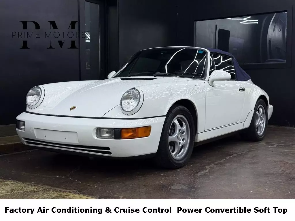 Prime Motors Co is proud to present to you this 1992 Porsche 911 Carrera 2 Cabriolet, finished in Black over Classic Gray Leather Interior. The 964-generation Carrera 2 represents the perfect bridge between vintage air-cooled purity and modern performance pairing timeless Porsche design with mechanical refinement and the unmistakable feel of a true analog 911.