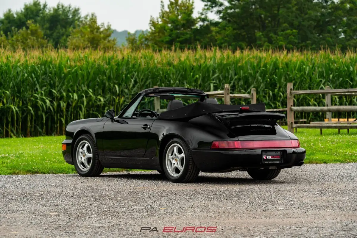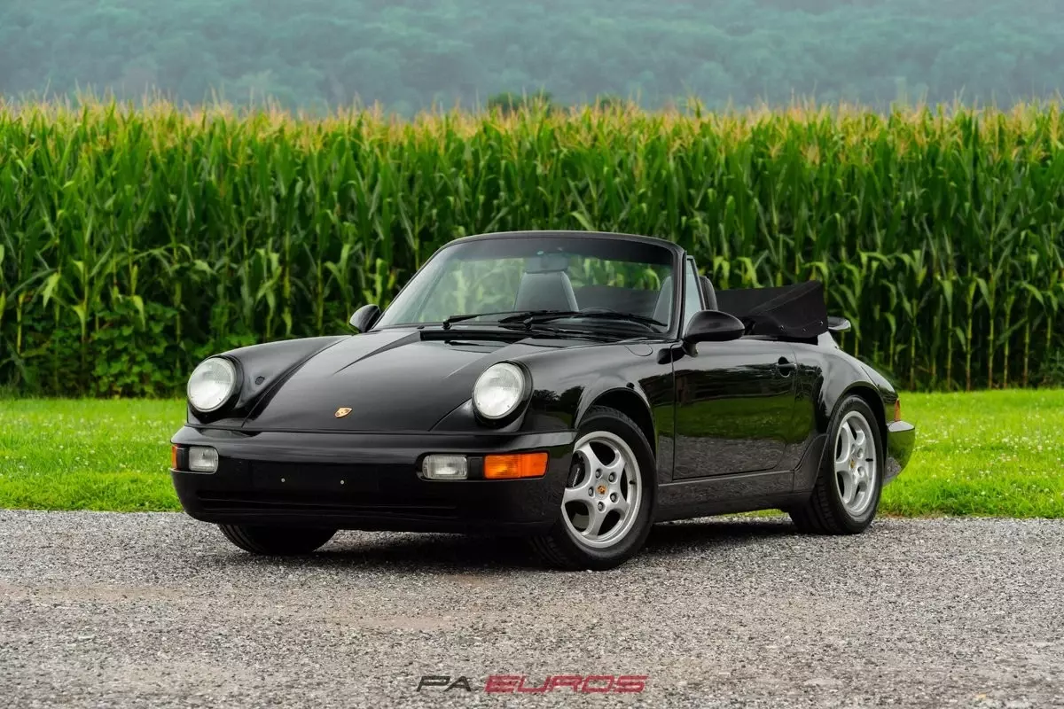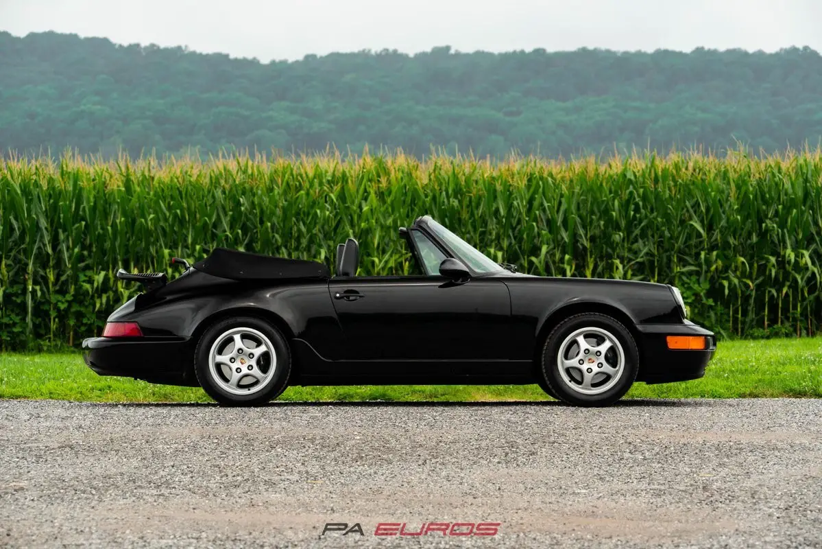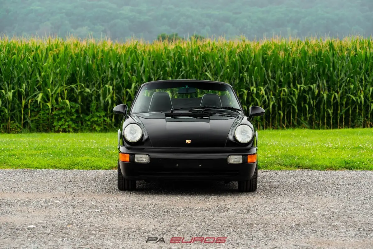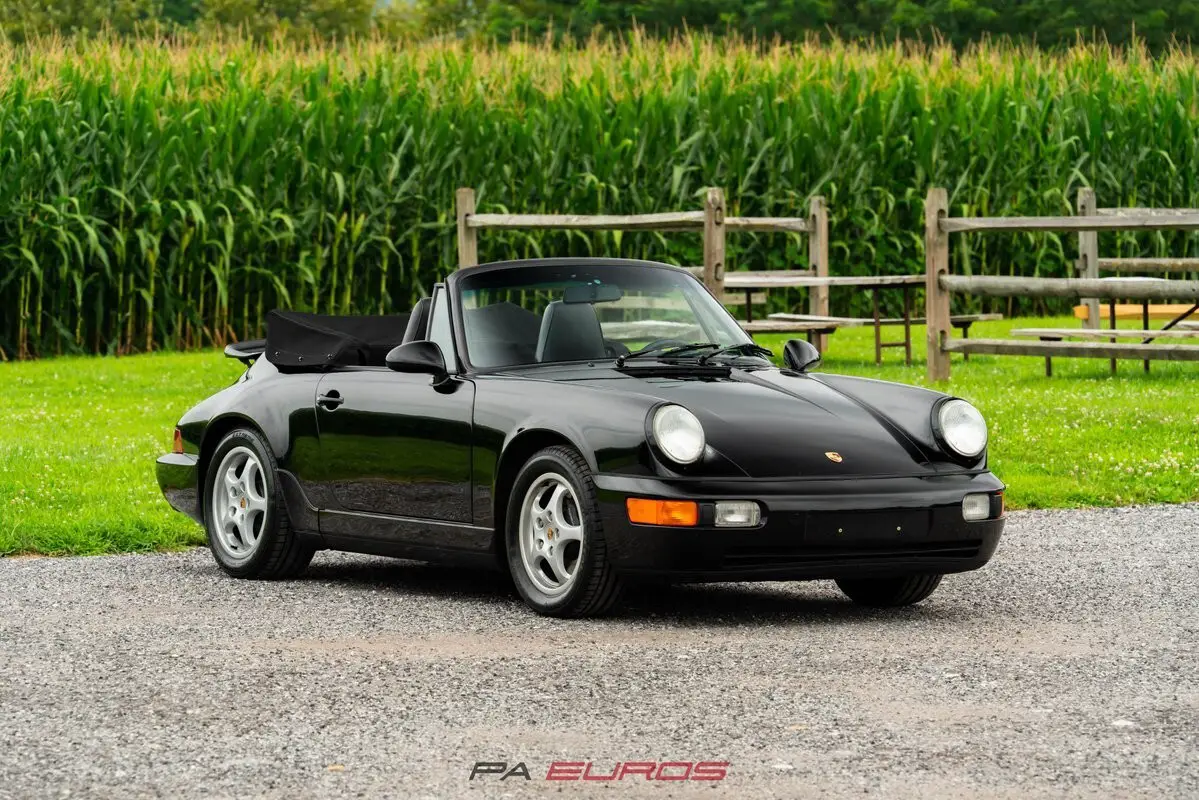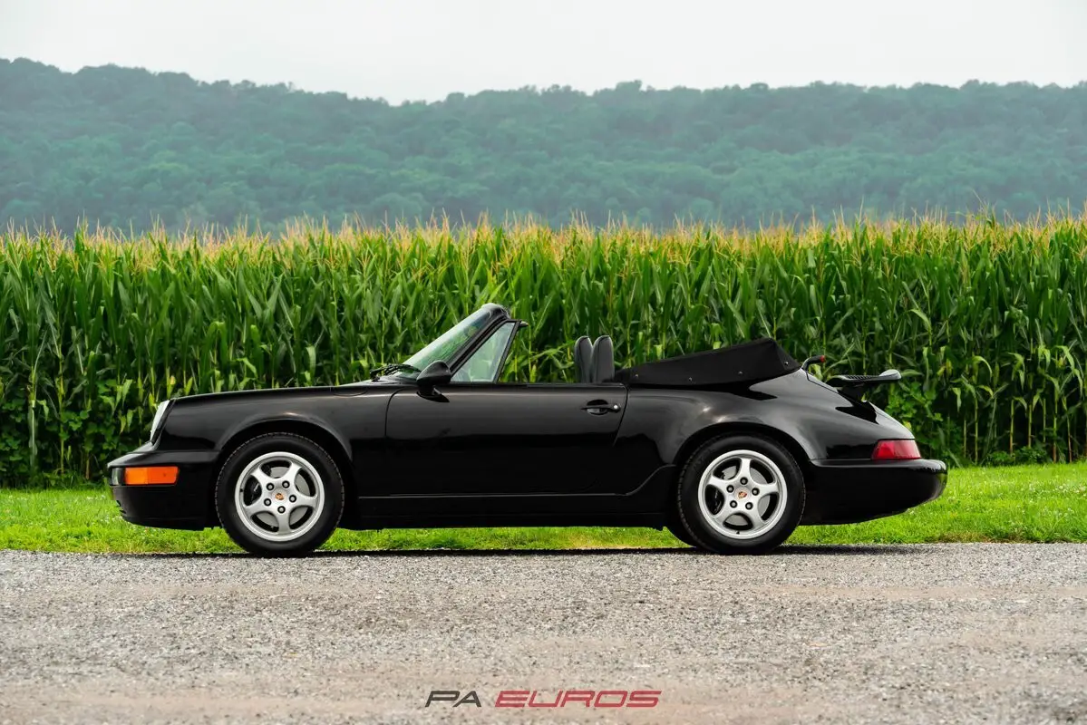 Finished in Black with a matching Black convertible top over a Black partial leather interior, this 1992 Porsche 911 Carrera 4 Cabriolet (964) is a well-preserved example of one of the most iconic air-cooled 911s. Equipped with a 5-speed manual transmission, all-wheel drive, and a naturally aspirated 3.6L flat-six (M64/01), this 964 was produced in July of 1991 and delivered new to the U.S. market.