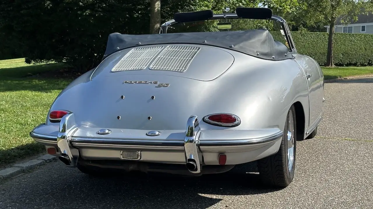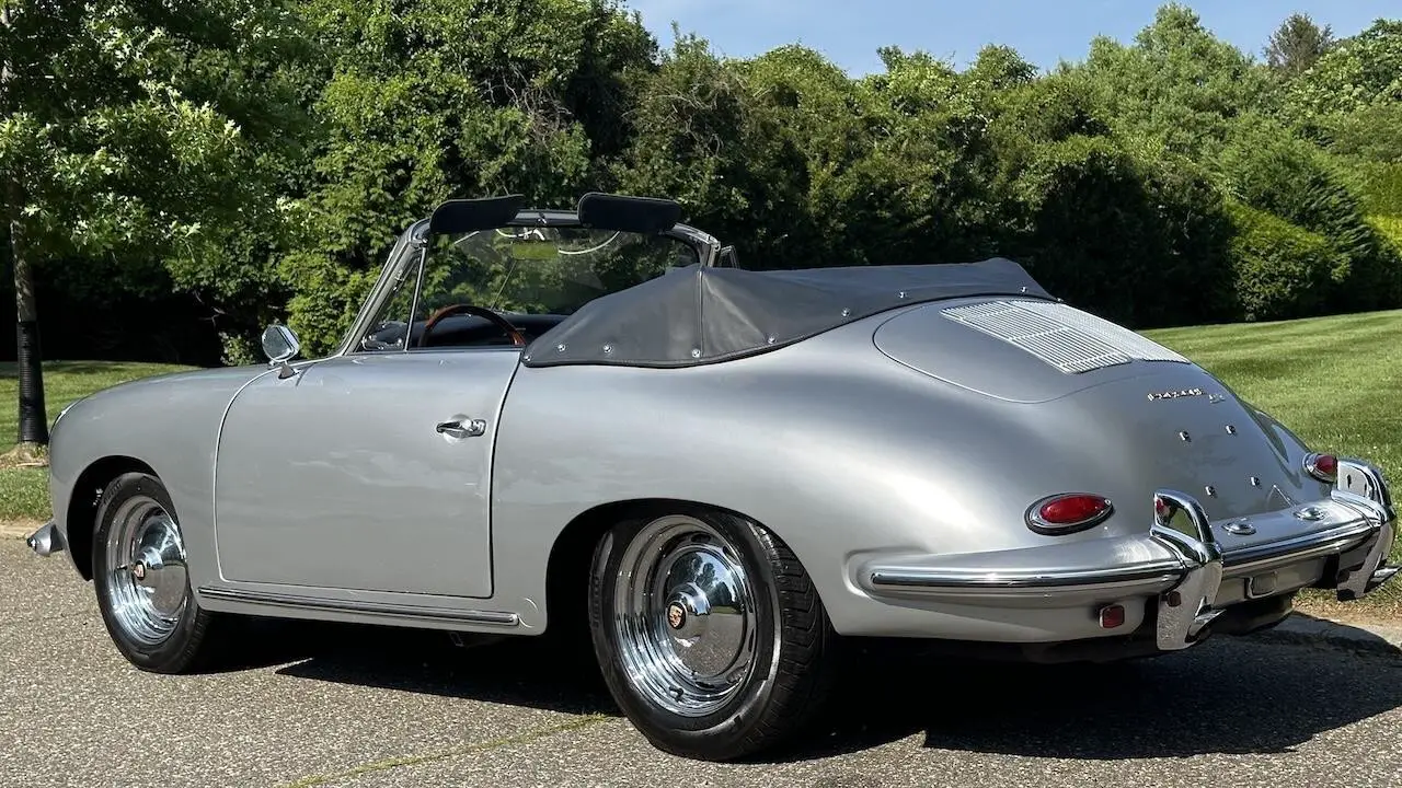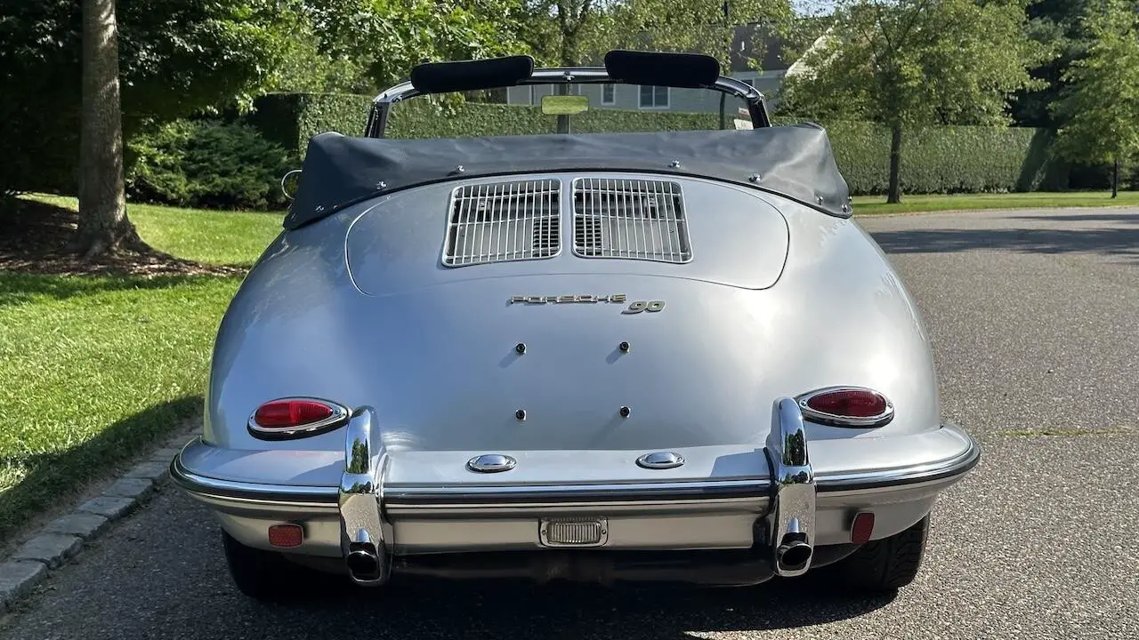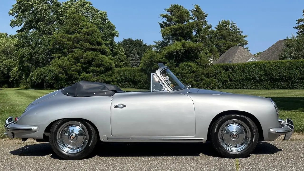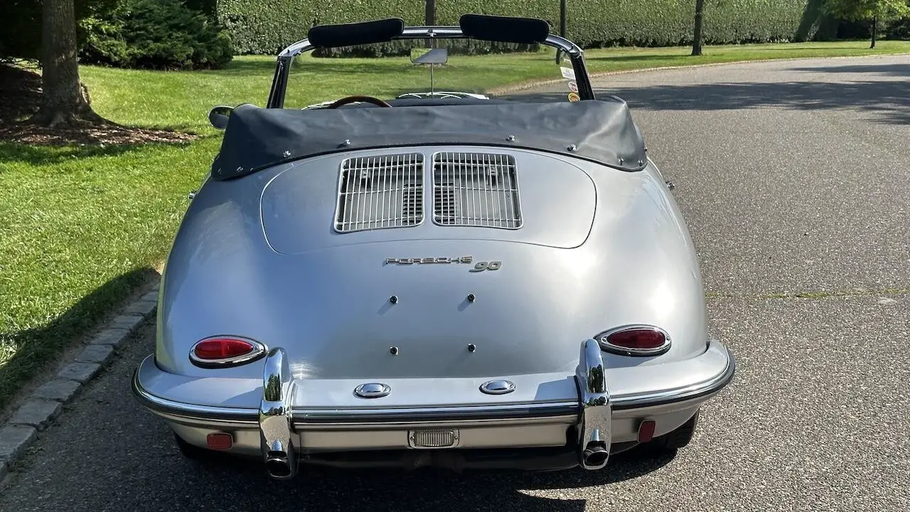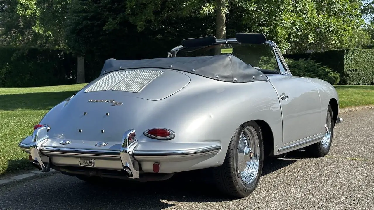 1962 Porsche 356B Cabriolet. This is a numbers matching example that has been extensively restored and is in excellent condition. Finished in silver over a navy leather interior.