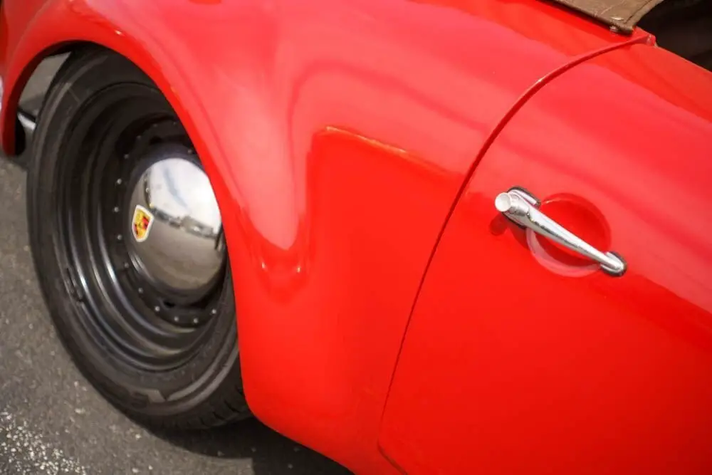 Within the last 25 years, replicas of the 356 A have become very popular. This one, dressed in red, is quite striking and was built by Classic Motor Carriages out of Miami, Florida.