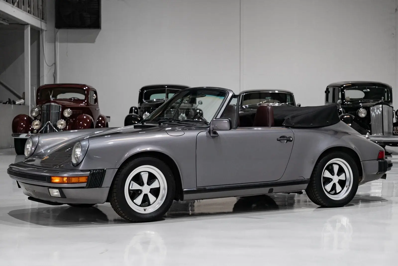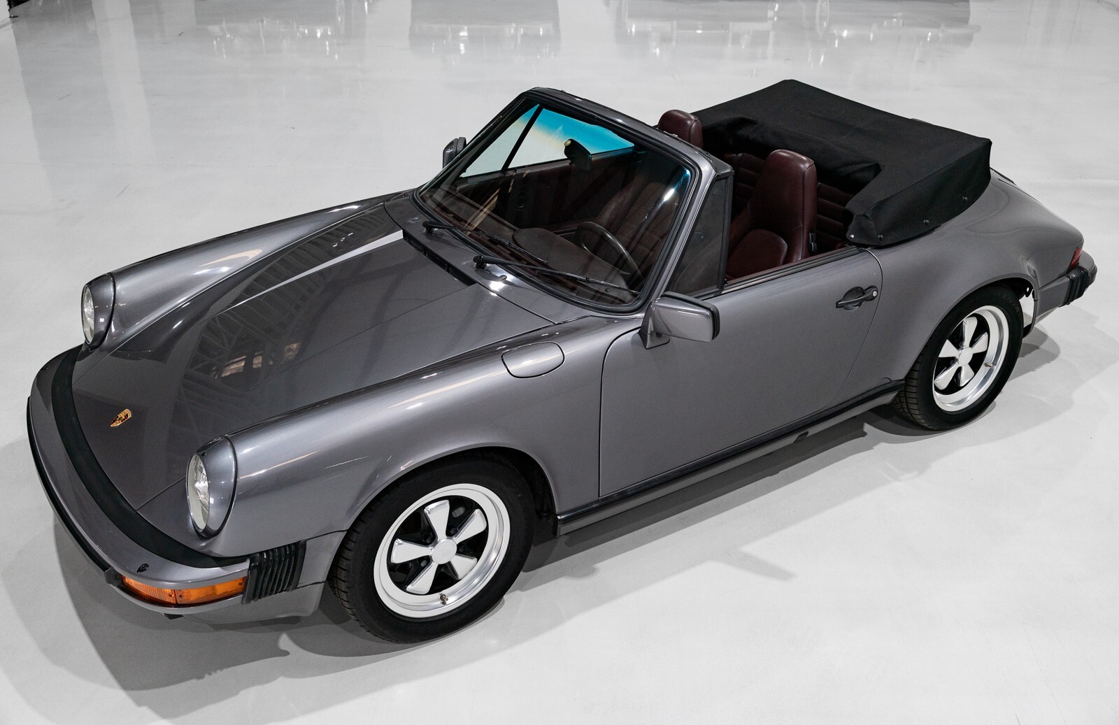 The stunning 1986 Porsche 911 Carrera 3.2 Cabriolet featured here is finished in gorgeous Slate Grey Metallic over an impeccably kept Burgundy leather interior with a Black power-folding soft top. This exquisite motorcar has been meticulously maintained and driven a mere 23,922 miles from new. This investment-grade example checks all the boxes: low miles, impeccable condition, and a gorgeous color combination make this the perfect example to add to any premier collection. Offered to the most demanding collector, investor, or enthusiast who desires only the very best at an investment price!