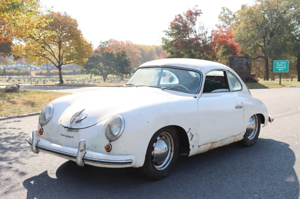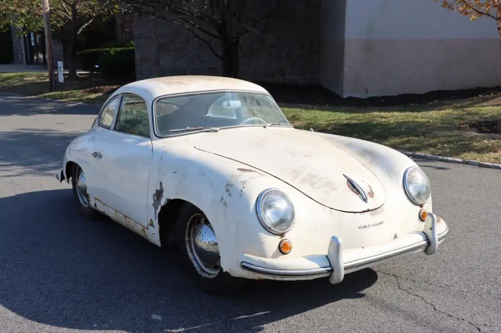 This 1953 Porsche 356 Pre-A Bent Window Coupe is an original unrestored example out of 40 year ownership where it's been hidden away in storage for decades. White with original blue leather interior. It was originally Fashion Grey making for an excellent original color combination. The engine is a correct but non-matching 1500 unit from 1955. Offered with its Kardex. The car has rust but remains intact and complete. It was built in November of 1953 and sold through Hoffman in New York. This Pre-A coupe has been patiently awaiting a well-deserved and worthy restoration. This car has never been restored so you can be the first to do so.