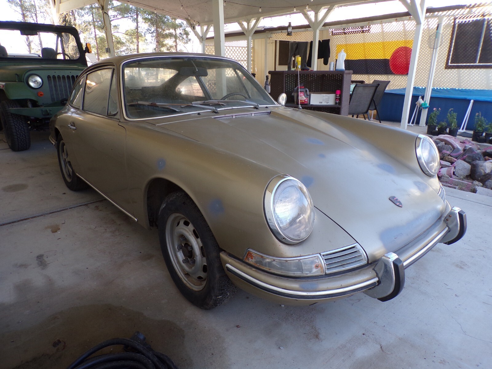 1967 Porsche 911 2.0 6cyl believed to be a 2 owner car NO RUST Garaged in California desert for the past 20+ years. Invested in professional 35 year air cooled Porsche mechanic to service, tune and completely service and rebuilt weber carbs. Car is straight with few if any dings. The primer spots covered paint chips to prevent any surface rust. Odometer reads 69k and may be close to original. I have known the original owners to this car for the past 20 years and I am currently assisting finding a new home for it to re-invest in medical bills. This car will need the brakes, fuel system serviced, and new tires and overall restoration. Car can be started and ran. Transmission condition is unknown. 4 speed transmission. Original keys are misplaced and a new ignition will need to be installed. Undercarriage and rockers show no signs of rust. Original paint. Please message for more information, photos or anything else missing. Please feel free to reach out for viewing. Closest airport is Las Vegas plus a one hour commute to my location. Another option is there is a local private airport approx. 15 minute commute from here.