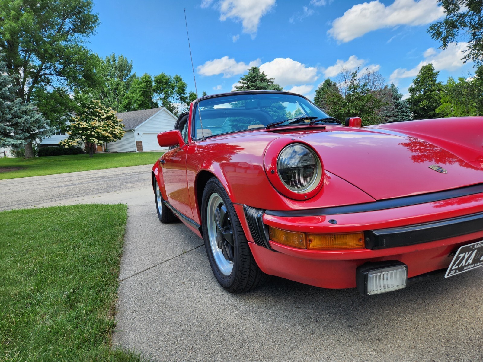 Selling my very nice 1982 Guards Red Porsche 911 SC Targa. I've invested more than 50K in restoring and refurbishing it over the past 3.5 years with most all of the work completed by Porsche of Minneapolis Classic. Documented work includes full engine rebuild with all new supplemental parts, new rear brakes, new alternator mounting housing, oil level sender, battery, fuel pump, new fuel injectors, oil cooler line, fuel distributor control rebuilt, new seat belts, new drivers side power window motor, new black dashboard, refurbished leather steering wheel, A/C repair/recharge, new weather strip seals throughout, new rear taillights, new Porsche center reflector, new Porsche classic stereo with Nav, satellite radio, with blue tooth, and many more items which I've documented. The odometer reading is not accurate. A previous owner replaced it at some point however the engine and most of the mechanics are now new/rebuilt. The car has no rust and has been stored in my heated garage in a car capsule. Prior to my ownership, the car was repainted in its original guards red color and has some fade in spots due to age. The paint shows well however the right rear fender has clear coat issues that are visible upon close inspection. There are two dimples in the front cowl due to a previous owner dropping the hood, there is also a depression in the underside of the gas tank, and a small chip in the fender next to engine hood. The front seats have been recovered in tan vinyl, and the back seats are in good shape in their original tan color. The car originally had a brown dash and trim but was replaced with a black after market. All glass is good with no cracks. Cruise control is in op. A/C blows cold and just had blower box fan replaced and upgraded to Hurricane replacement. Tires are very good. I have Porsche Cert of Auth and fully documented repair records. Includes manuals, toolkit, car cover, sunshade, and air comp. Mechanically sound car that's ready to drive. Buyer is responsible for shipping but I'm happy to help with logistics. Full payment due within 7 days of auction.