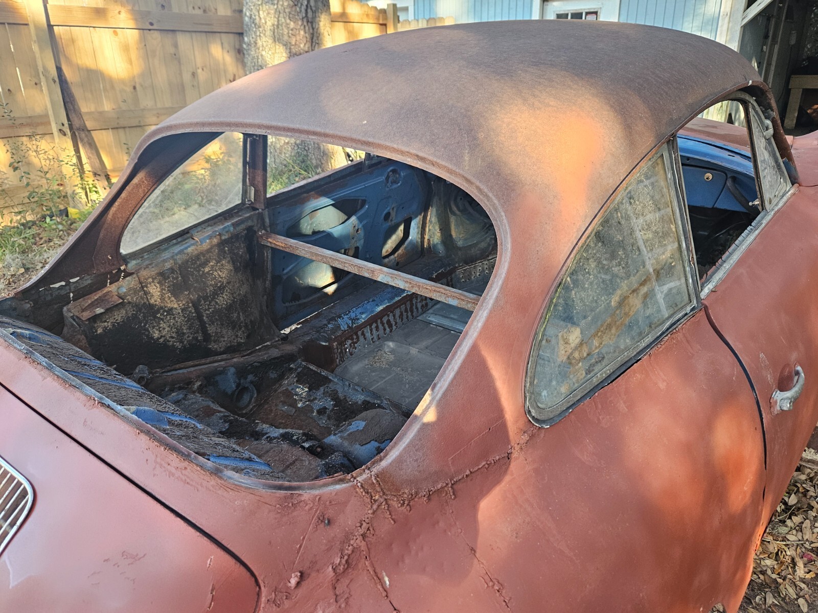 This is a 1964 Porsche 356C. Yes, it is a genuine factory steel Porsche body with all factory vins intact. The vin is 1286868. It can be used for yard art, a chassis swap, or build a hot rod and piss off the sanctimonious Porsche purists! :) Here are the details...-Clear open title good for export or any US state-all 3 factory vins intact. Stamped vin and aluminum plate under the hood and vin plate inside the drivers door.-There is no engine, transmission, suspension, wheels, etc. Nothing more than shown in the pics.I do have spare Porsche engine and transmission parts if a buyer is interested.-A new perimeter floor has been welded in and new Stoddard floorpans are included. The doors actually open and close, as does the decklid. Stoddard longitudinal metal replacement panels are included.-The front beam has been cut out but is included.-I will have this securely mounted to a wooden dolly for transport-More photos at this link. https://beautifulsurf.smugmug.com/1964-Porsche-356C-tub