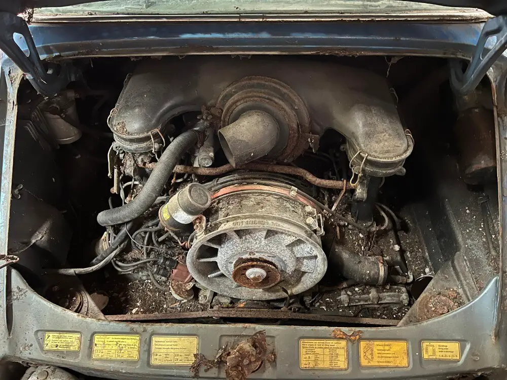 This barn-find 1972 Porsche 911S Targa is a matching numbers example and an original Gemini blue car with black interior. 1972 was also the one and only year that the 911 had an external oil door. A highly collectible year for the classic 911 and a sought-after S model wearing an excellent factory color. Just out of long-term ownership and unearthed after being hidden away and out of sight for decades. Not currently running and has rust as it has been sitting for many years. The ideal original