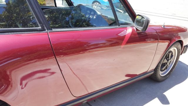 For Sale is a 1978 Porsche 911 SC Coupe with Sunroof. It is maroon color with black/silver interior. It has the 3.0 liter 6 cylinder with 5 speed manual transmission.