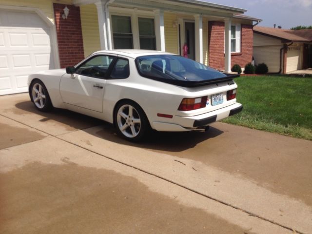 1986 944 Turbo. I purchased in September of 2013 and had shipped to STL from San Fransisco, life long California car except for the 3 years in my garage. Has been completely reliable for the few thousand miles I've driven it on nice days. Roughly 3,000 miles prior to my purchase the car got the following: new front control arms, radiator (aluminum Modine unit), timing belt, water pump, Michelin Pilot Super Sport tires (245/45/17 rear, 225/40/17 front). At some point in the recent past the door and hatch seals were replaced. Records show a repaint in the early 2000's. I have literally hundreds of service records going back decades. The odometer failed shortly after I got the car and I haven't bothered to fix what's commonly a broken drive gear in the unit, it went from showing 126,00, to 336,000. True mileage is supported by all of the more recent service records and the car now has roughly 130,000. It also has a recent factory correct carpet set installed, the dash is extremely good with no cracking on the main surfaces, just some micro cracking around the small defroster vents up by the windshield. A/C works well and was changed to R-134 in 2013. Car drives extremely well. Mild upgrades from previous owner(s) include upgraded head gasket, flow-matched fuel injectors, higher pressure fuel regulator, upgraded turbo unit (was told to same spec as later cars, some documentation of this) manual boost controller, dual port wastegate, 18 psi chip set. Tons of money has been spent on making this a really fun, fast, good handling car, everyone that drives it loves it. It has a minor valve cover gasket leak (just a few drops over extended periods of sitting in the garage), a few minor paint blemishes, not noticeable until pointed out to most people, and the power mirrors only operate manually, and an intermittent exhaust heat shield rattle. Super dry and clean underneath with no rust ever. Couple minor blemishes on seats. Over all a very nice driver quality 951. Message with questions or for more pictures. Vehicle listed locally as well, so auction could end early. New Missouri title is being processed and will be available by auction close or within a few days thereof.