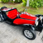 | The motor runs and sounds good, I don't know much about the history of the Manta. The car has drum brakes, the gauges all work, tilt steering column, windshield wipers don't work; the windshield is acrylic. The battery should be replaced or kept on a charger. Since driving around more I saw a couple drips on the floor coming from the shift rod of the transaxle. The 2 cooling fans work well. You have to raise the car when you want to drive, the car had a leveling set up that leaked so it was bypass and is on a toggle switch. The headlights are manual not auto open. The Manta only weights 1900lbs so stopping and turning without power assist is no problem. The tires are T/A 265 50 15. The kids think it is the BATMOBILE, and everybody looks and takes pictures. The top of the car is 41" low. Very Good project. |