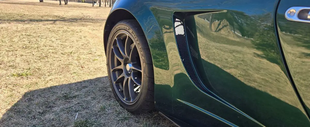 Powder Coating - 818 chassis 818 Trunk kit 818 Street Splitter, Carbon Fiber Carbon Fiber Street Spoiler Carbon Fiber Rocker Panel Extensions Adjustable Rear Lateral Control Arms 818 05-07 CV Axle w/kit 818 Complete Carpet Set Battery Cut-Off Switch Harness Bar Mount 818 Wiper Kit (modified for single wiper, custom hood interface) Billet Aluminum Shifter Assembly Matte Gunmetal Wheels Vinyl Covered Dash/Door Panel Upgrade