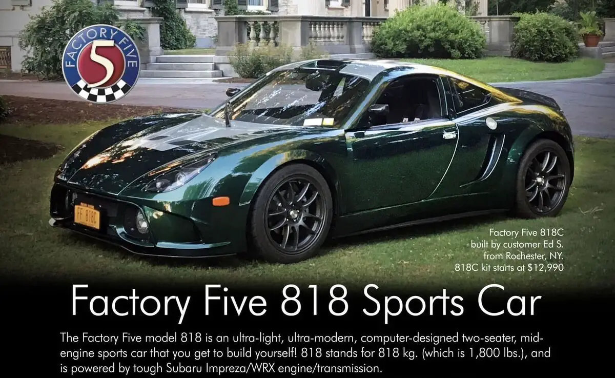 The Factory Five 818c is an affordable two-seater, mid-engine car that is a modern original design. You will be hard pressed to find another Factory Five 818C in this condition. 2 year build by a race engineer, impeccable build with many options not found on other 818c's. I am the second owner. The car has wonderful sound and is a blast to drive.