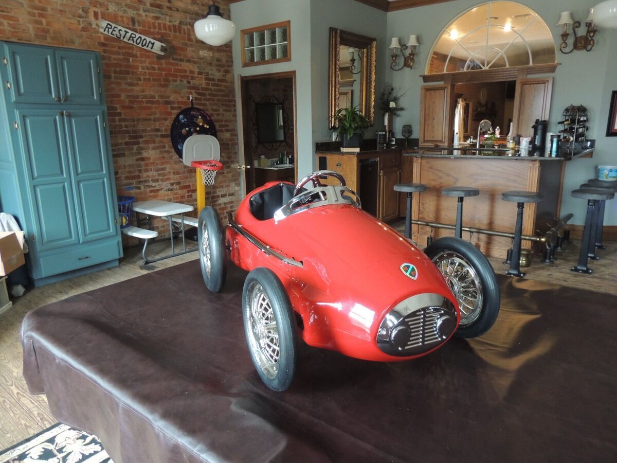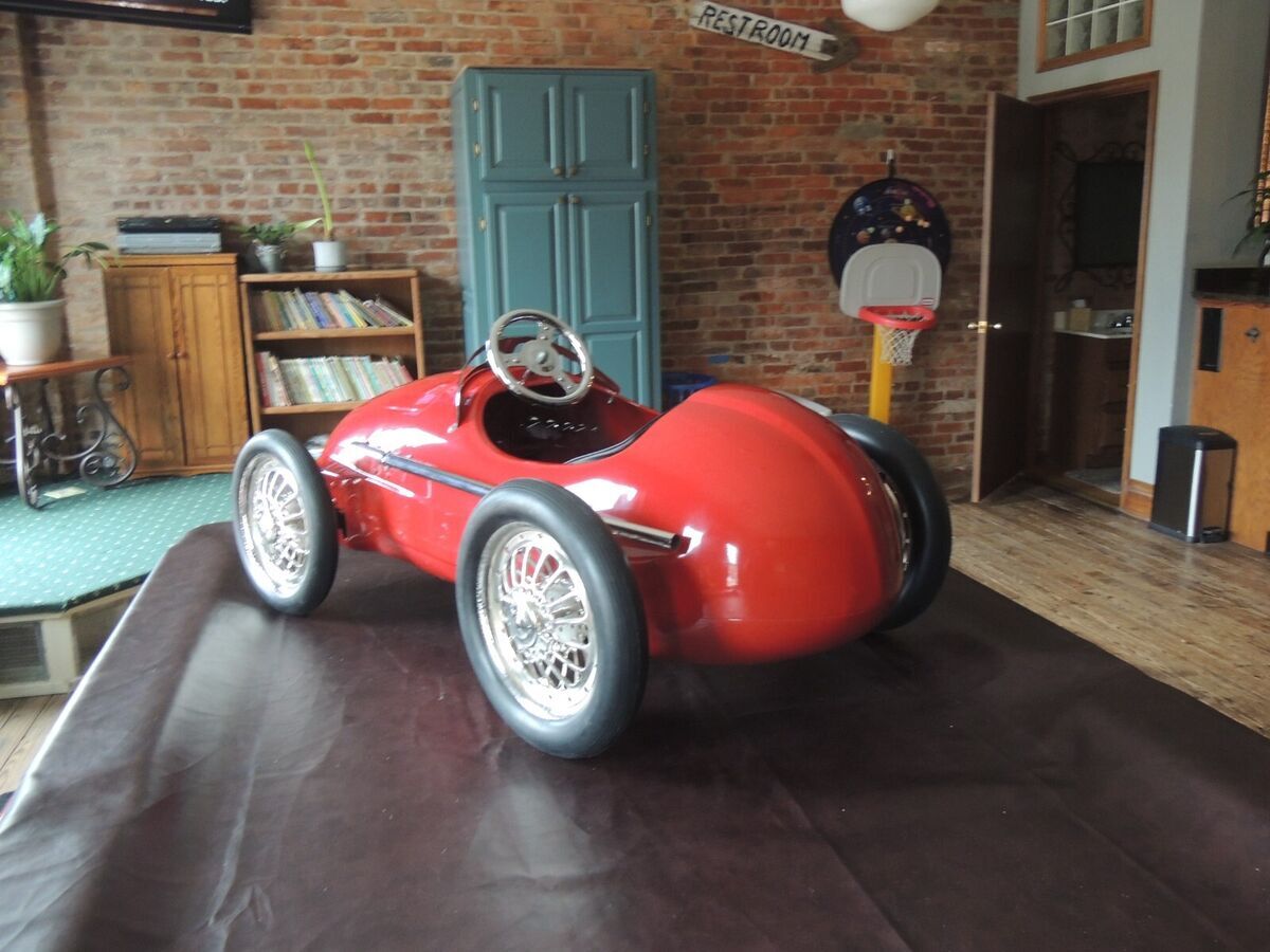 Up for your consideration is a pristine example of an American Red Racer pedal car. I purchased this new in the box over 12 years ago, right before my twin grandsons were born. It has NEVER been on concrete. It has only been rolled on carpet. Look at the close ups of all four tires, and you can see that it still has the molding mark on it. It was only used inside the house for photo ops. My youngest grandchild is now five, and I have already captured precious moments with her and my other grandchildren in the car, so I just don’t need it. I would like to sell locally, as I did not save the box, and crating it up to ship would be a real pain.It is meant to mimic an early Ferrari Roadster. As you can see, it comes with two Scuderia Ferrari sport team stick on emblems. I don’t remember if those came with the car, but most of the ones you see today have them installed just above the mock exhaust manifolds on each side of the car. However, I never installed them. They are as new.Also included is all of the original paperwork. Two sets of assembly instructions and an exploded view of the car.Also included are the following items that did NOT come with the car, that I paid extra for:Two #5 Harris decals. These are high end decals used on race cars back in the day. I never put them on. They are still in the original protective sleeves with the squeegee and the instructions.A real Ferrari chrome prancing horse with two mounting posts on back. This is NOT repop. It is a genuine Ferrari emblem. Unless you cut the posts (for two sided tape) this would require drilling holes to mount. Up to the new owner.As stated, those items did not come with the car.If the ad is up, it is still for sale. These have been selling for crazy money lately. Check out Bring a Trailer. One recently brought $8250 (NOT including the buyer’s premium) and another for $7500. NEITHER of them had original paperwork, and obviously did not come with the extras that I have. The one that brought $7500 had a hideous scratch (poorly repaired) on the front and was missing the “spinners” on the wheels. This one does not have a dent or a significant scratch anywhere. I can take as many pictures from whatever angle you want. I can almost guarantee that the first person to come and look at it will buy it. It is that nice. Frankly, it is so shiny, it is hard to get good pics if you are not a professional photographer (and I am NOT).This is for sale locally in Guthrie, OK,, just North of OKC. It is listed on OKC CL for sale. I am sure you can find it. I reserve the right to end the listing if sold locally and I am contacted directly.