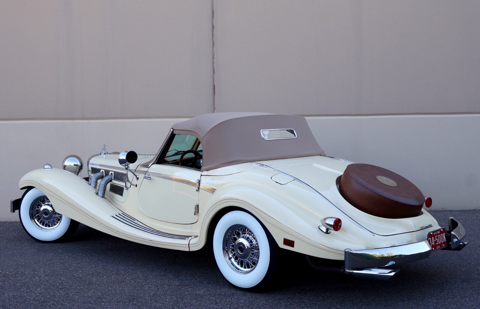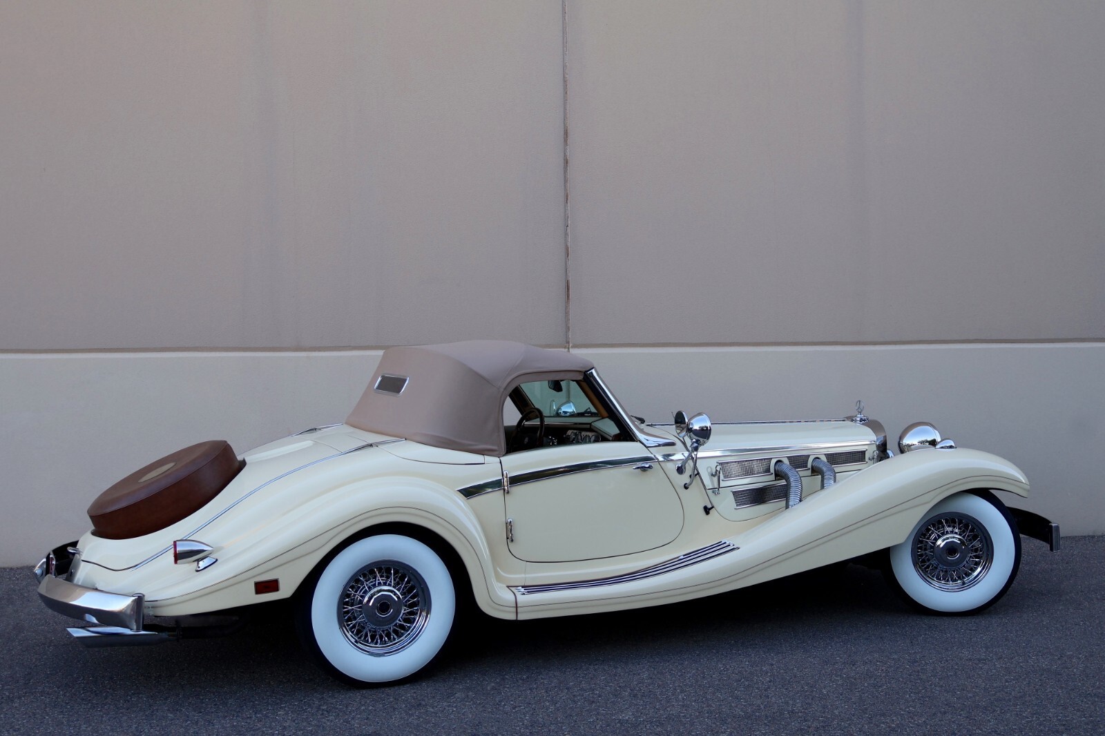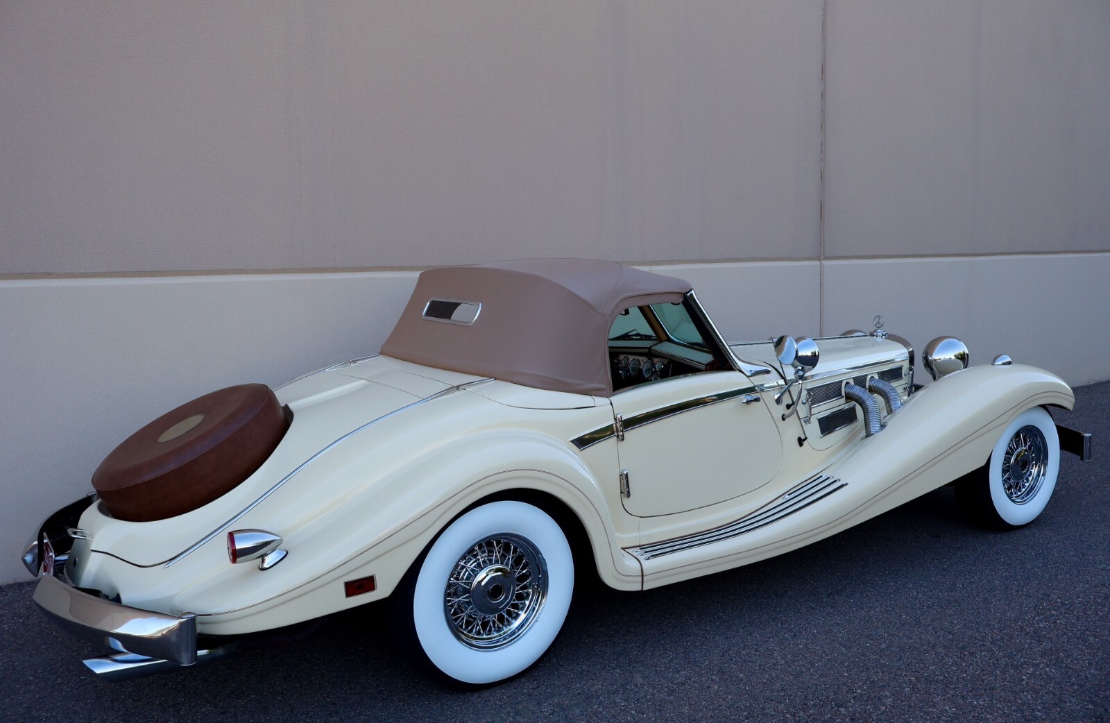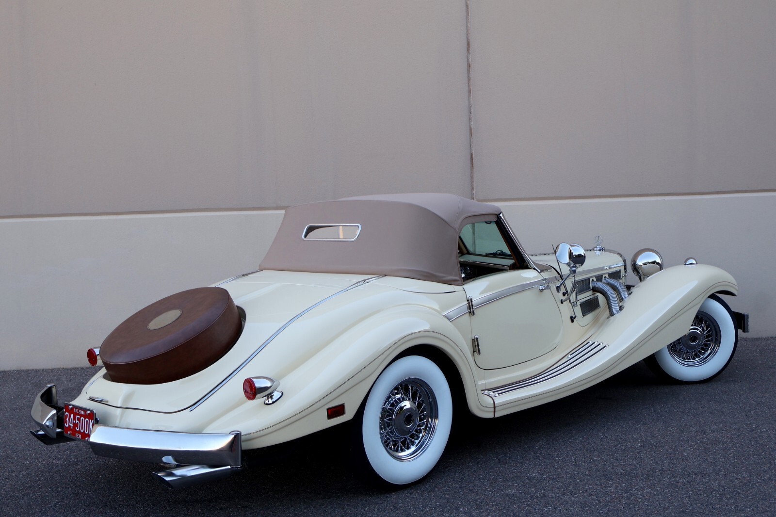 Up for sale is a recreation of a very rare and expensive Prewar Mercedes - the famous 1934 - 500, this tribute is not your average kit car, this is a big and heavy automobile built after the exact measurements of the original one. Ivory / French Vanilla paint color in very nice condition, brand new wide white wall tires and like new real wire wheels, brand new convertible top made out of German quality canvas by a local upholstery expert, clean and spacious interior with a custom made brushed aluminum dash and VDO gauges, Kenwood vintage stereo cassette, Raid 4 spokes wooden steering wheel made in Italy, clean tan bench and clean brown carpet, same for the spacious trunk, headlights, cowl lamps and center fog lights - all in working order, 500K original style front turn signal lights that give the car a more authentic look, old fashion trumpets / horn in working condition, very thick suicide doors with vintage door handles and rollup windows, beautiful body molding as the real deal has, super solid chromed bumpers, dual exhaust with a nice sound, optic supercharged pipes on both hood sides, 2 pieces hood and 2 pieces windshield.... and a lot more to be mentioned.... Clean engine compartment, powered by a very reliable V8 - 350 - 5.7L engine and automatic transmission, runs and drives excellent, power steering, power brakes, A/C... pretty much all the modern features that makes the ride pleasant. This rare ivory color will not stay long on the market, don't let it go if you're looking for something like this, hard to find another as nice as this 500K.... to build one these days the cost will exceed 100K ! Car comes with a Heritage 500K Manual and a clean title, ready to go to a new home and be enjoyed !If you want to finance this vehicle please contact Chris Laganelli at J.J. BEST BANC CO. (800 872 1965) very fast loan approvals, especially for classic cars.