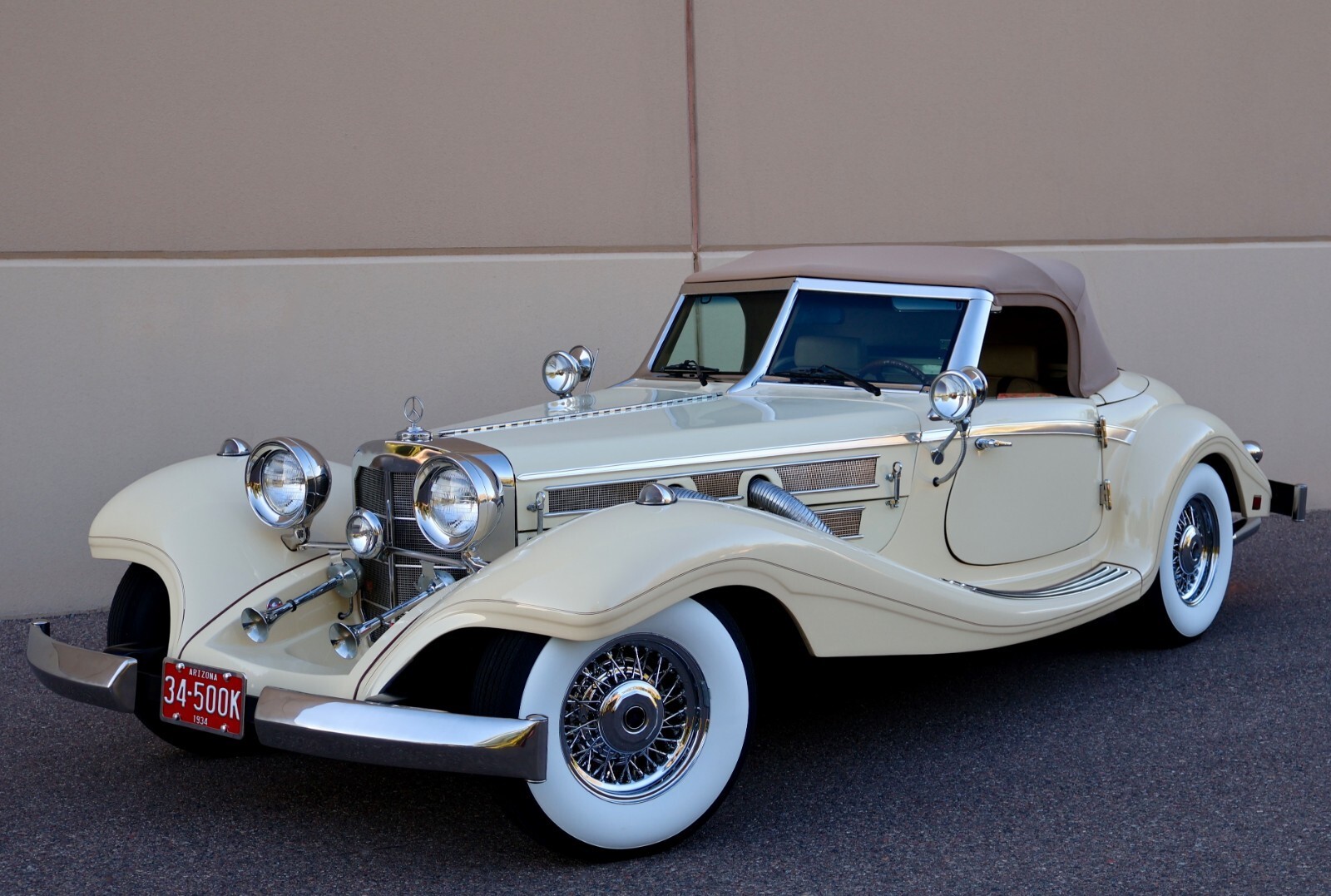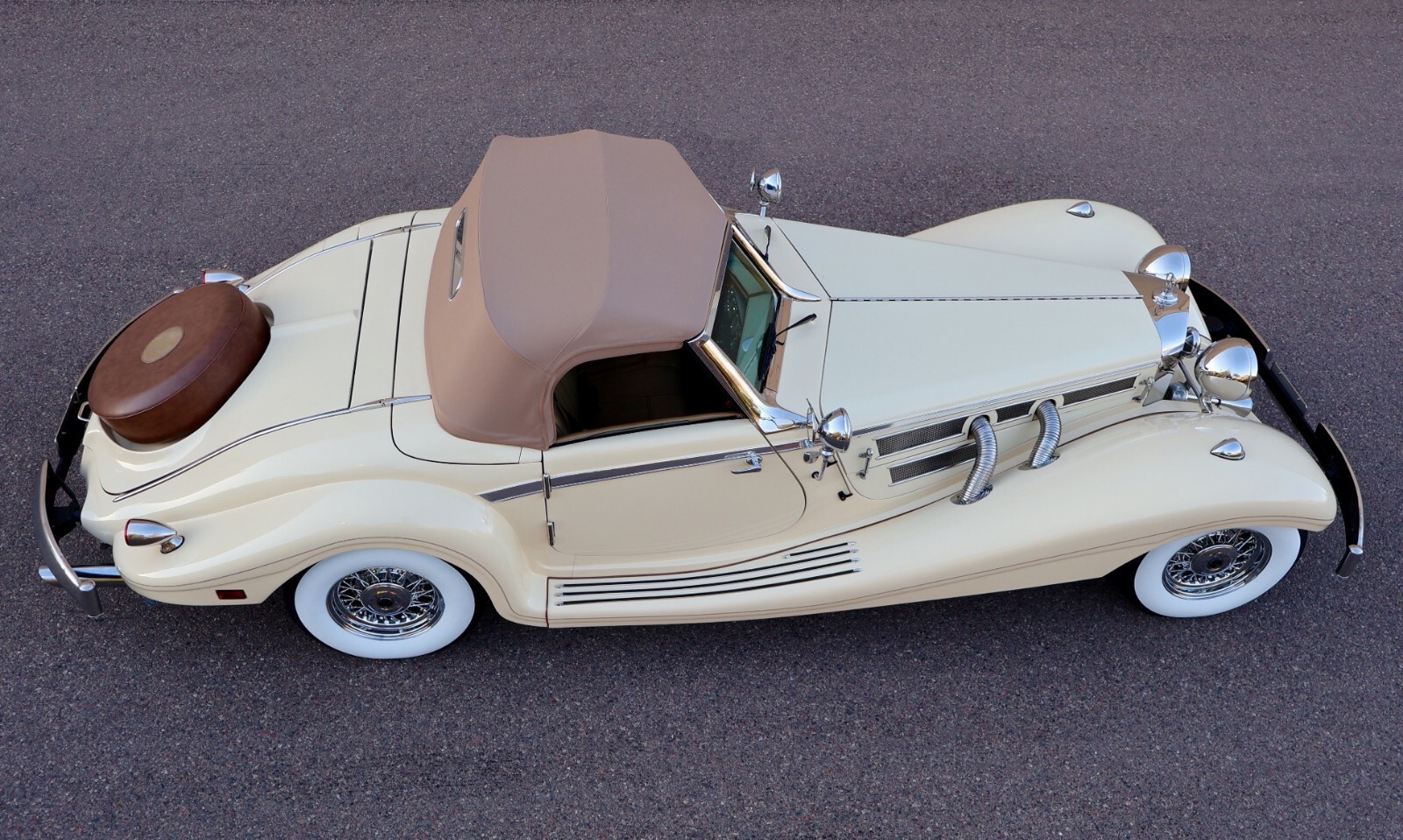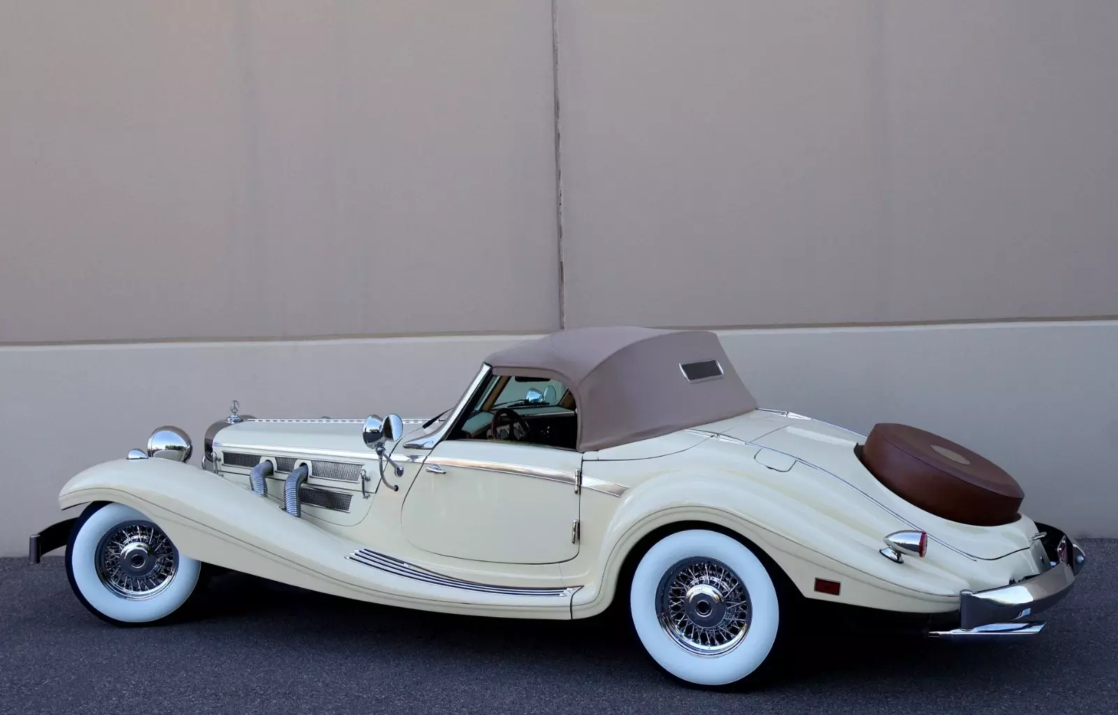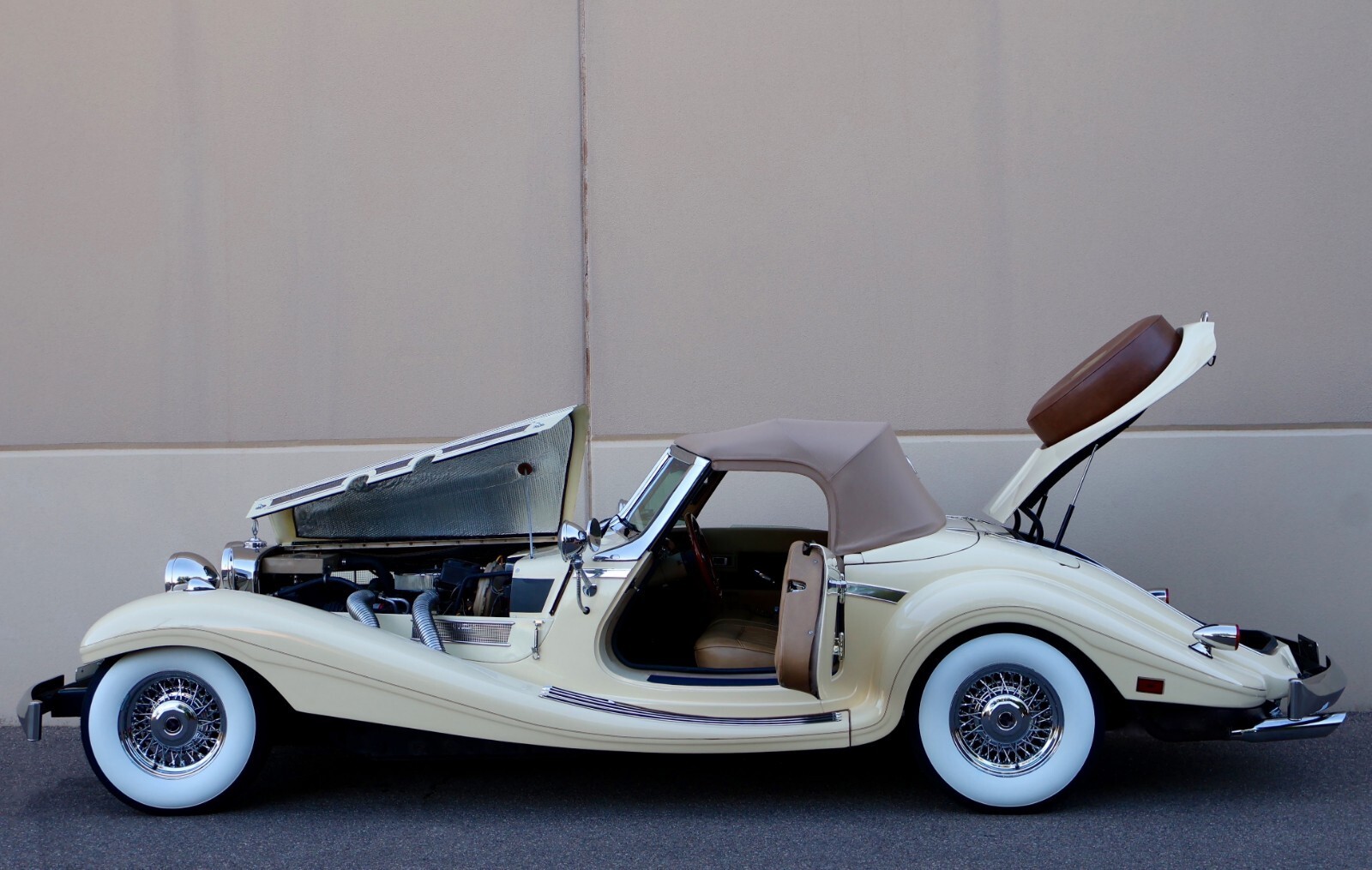 Up for sale is a recreation of a very rare and expensive Prewar Mercedes - the famous 1934 - 500, this tribute is not your average kit car, this is a big and heavy automobile built after the exact measurements of the original one. Ivory / French Vanilla paint color in very nice condition, brand new wide white wall tires and like new real wire wheels, brand new convertible top made out of German quality canvas by a local upholstery expert, clean and spacious interior with a custom made brushed aluminum dash and VDO gauges, Kenwood vintage stereo cassette, Raid 4 spokes wooden steering wheel made in Italy, clean tan bench and clean brown carpet, same for the spacious trunk, headlights, cowl lamps and center fog lights - all in working order, 500K original style front turn signal lights that give the car a more authentic look, old fashion trumpets / horn in working condition, very thick suicide doors with vintage door handles and rollup windows, beautiful body molding as the real deal has, super solid chromed bumpers, dual exhaust with a nice sound, optic supercharged pipes on both hood sides, 2 pieces hood and 2 pieces windshield.... and a lot more to be mentioned.... Clean engine compartment, powered by a very reliable V8 - 350 - 5.7L engine and automatic transmission, runs and drives excellent, power steering, power brakes, A/C... pretty much all the modern features that makes the ride pleasant. This rare ivory color will not stay long on the market, don't let it go if you're looking for something like this, hard to find another as nice as this 500K.... to build one these days the cost will exceed 100K ! Car comes with a Heritage 500K Manual and a clean title, ready to go to a new home and be enjoyed !If you want to finance this vehicle please contact Chris Laganelli at J.J. BEST BANC CO. (800 872 1965) very fast loan approvals, especially for classic cars.