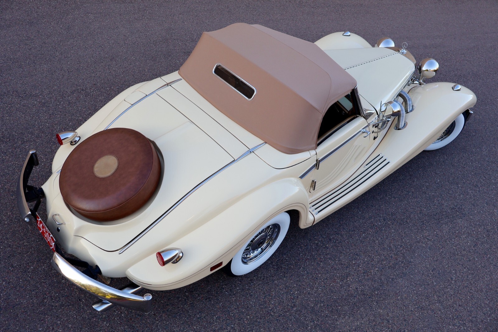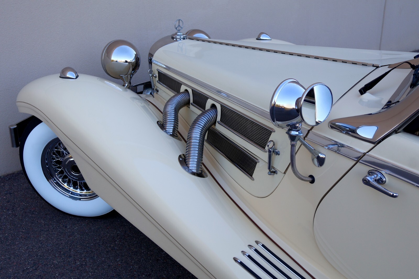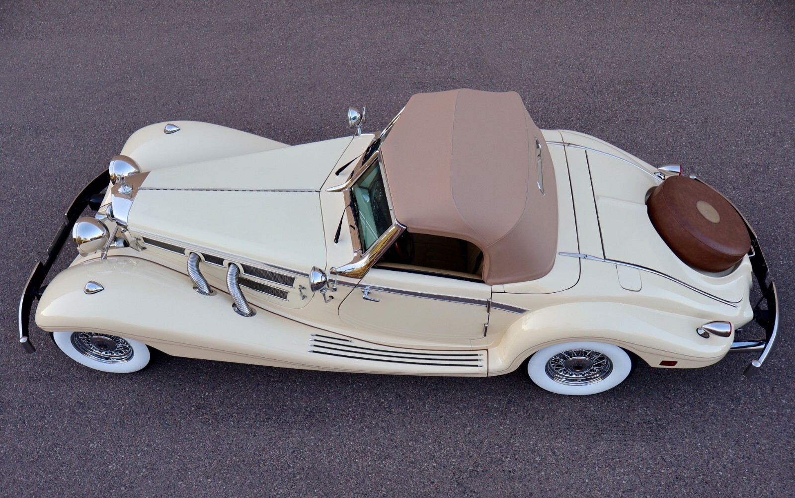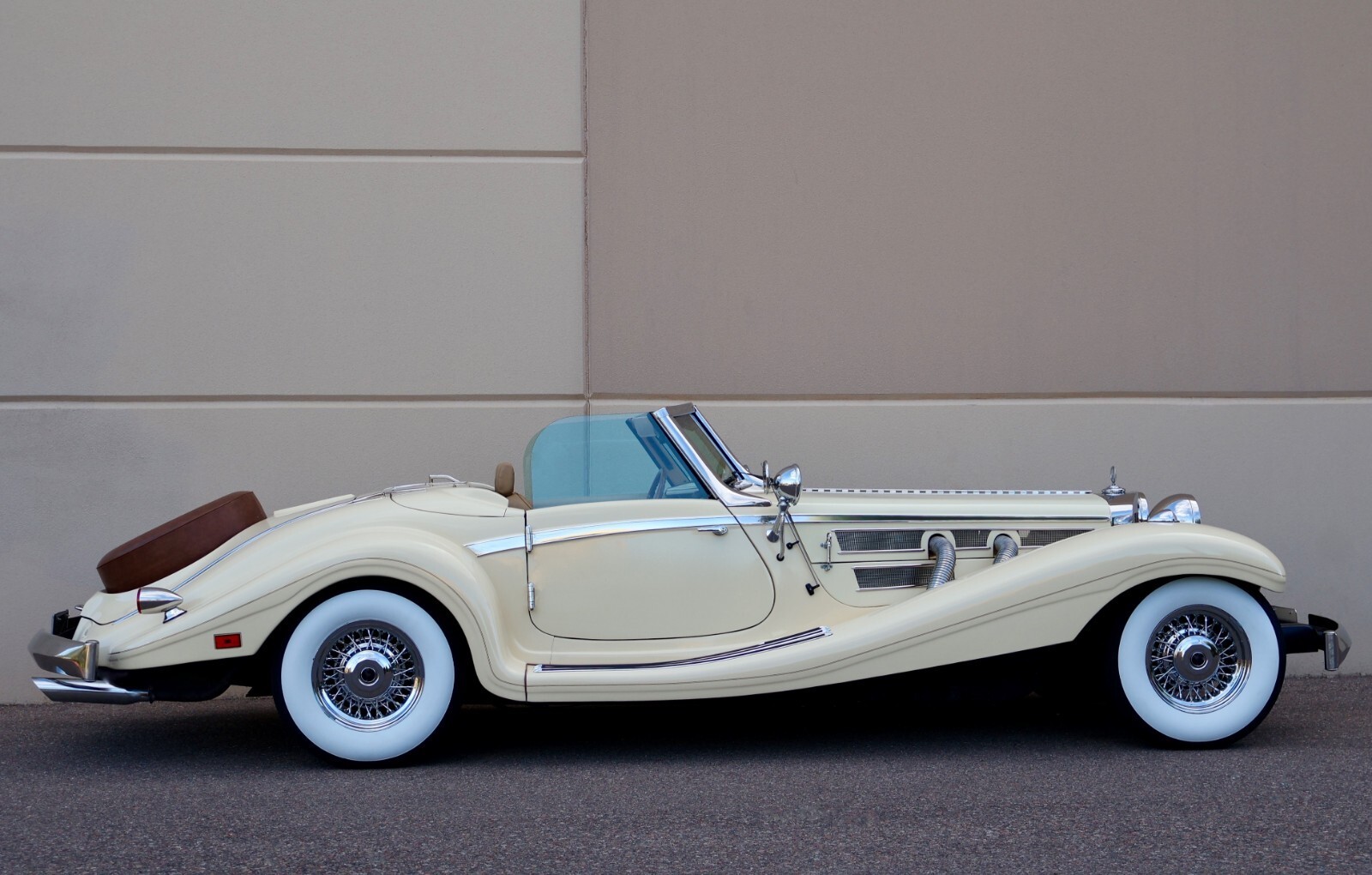 Up for sale is a recreation of a very rare and expensive Prewar Mercedes - the famous 1934 - 500, this tribute is not your average kit car, this is a big and heavy automobile built after the exact measurements of the original one. Ivory / French Vanilla paint color in very nice condition, brand new wide white wall tires and like new real wire wheels, brand new convertible top made out of German quality canvas by a local upholstery expert, clean and spacious interior with a custom made brushed aluminum dash and VDO gauges, Kenwood vintage stereo cassette, Raid 4 spokes wooden steering wheel made in Italy, clean tan bench and clean brown carpet, same for the spacious trunk, headlights, cowl lamps and center fog lights - all in working order, 500K original style front turn signal lights that give the car a more authentic look, old fashion trumpets / horn in working condition, very thick suicide doors with vintage door handles and rollup windows, beautiful body molding as the real deal has, super solid chromed bumpers, dual exhaust with a nice sound, optic supercharged pipes on both hood sides, 2 pieces hood and 2 pieces windshield.... and a lot more to be mentioned.... Clean engine compartment, powered by a very reliable V8 - 350 - 5.7L engine and automatic transmission, runs and drives excellent, power steering, power brakes, A/C... pretty much all the modern features that makes the ride pleasant. This rare ivory color will not stay long on the market, don't let it go if you're looking for something like this, hard to find another as nice as this 500K.... to build one these days the cost will exceed 100K ! Car comes with a Heritage 500K Manual and a clean title, ready to go to a new home and be enjoyed !If you want to finance this vehicle please contact Chris Laganelli at J.J. BEST BANC CO. (800 872 1965) very fast loan approvals, especially for classic cars.