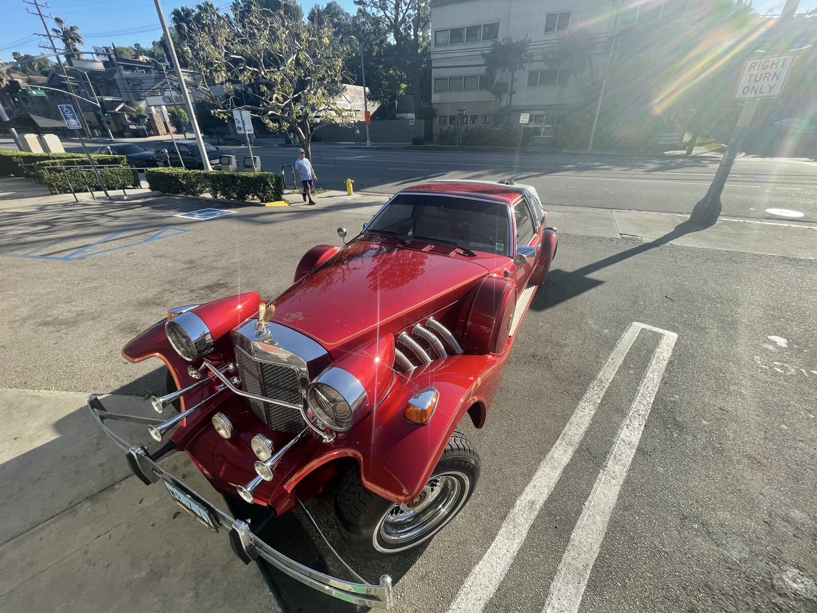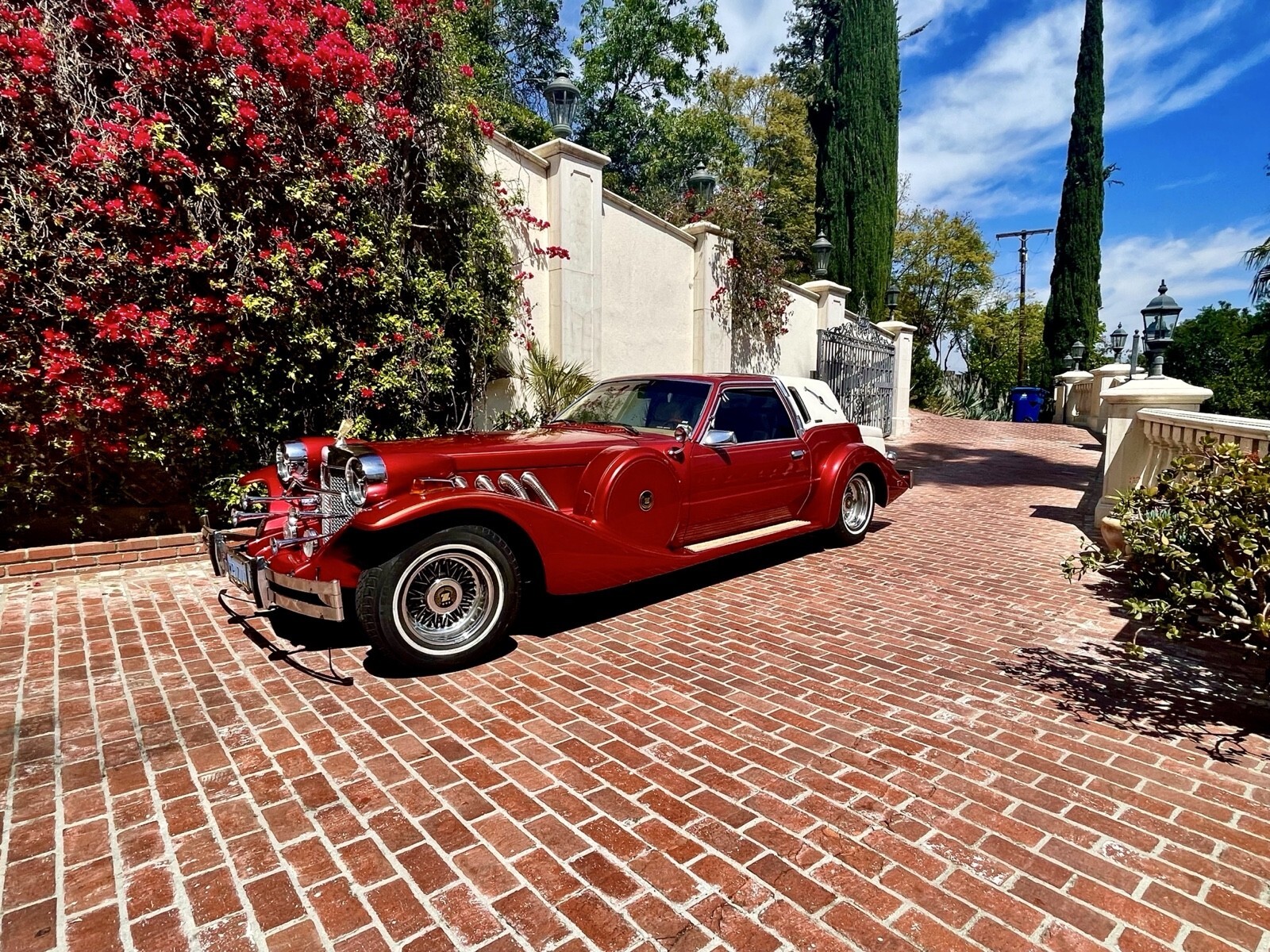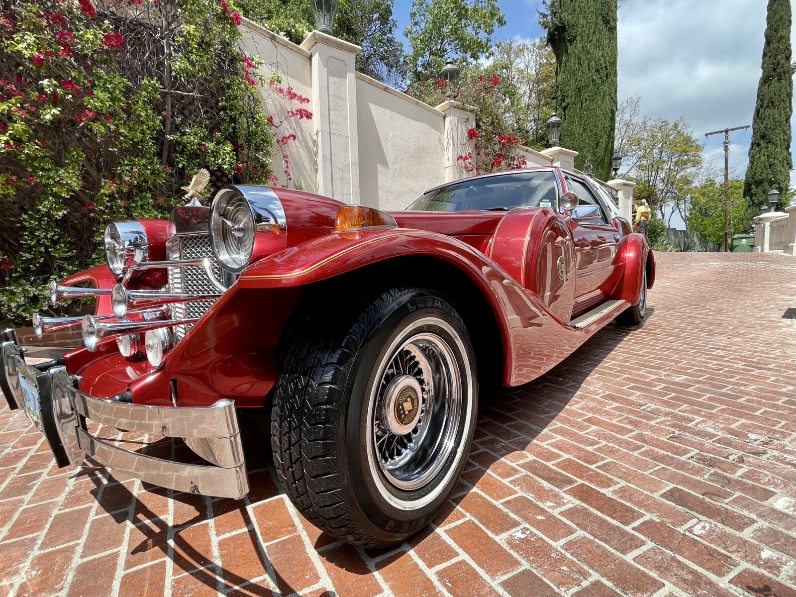 Not a kit… Ford made these rare & beautiful NEo-Classic’s on a Ford Mustang Drivetrain w/ Production quality metal body. These are no longer made & rare to be show quality… even more rare to be in a Candy Apple Wine-Red flake w/ hand painted pinstripes & gold plated forks & steering wheel. This garage kept gem surfaced in a Estate-Sale along with a mansion full of “Liberace Estate Sale furniture, paintings & memorabilia. Undriven then passes to a family trust where the second owner passed away it found itself bank-owned and offered in auction in Las Vegas along with items from the Liberace Estate. Vehicle was never titled or registered so a lengthy process to buy, transport & make road-legal in California it now has clean title as “Ford Mustang” 1982. Its has had a complete upgrade to brakes. Engine rebuilt, card rebuilt, automatic 3 speed transmission rebuild, AC upgraded, heat & lights and many other repairs to make it a daily driver. I have driven it for 2 years and DON’T WANT TO SELL, But for the right offer It’s listed to be passed on to the right owner who appreciates it; If it doesn’t meet reserve I’m excited to keep it for another few years.