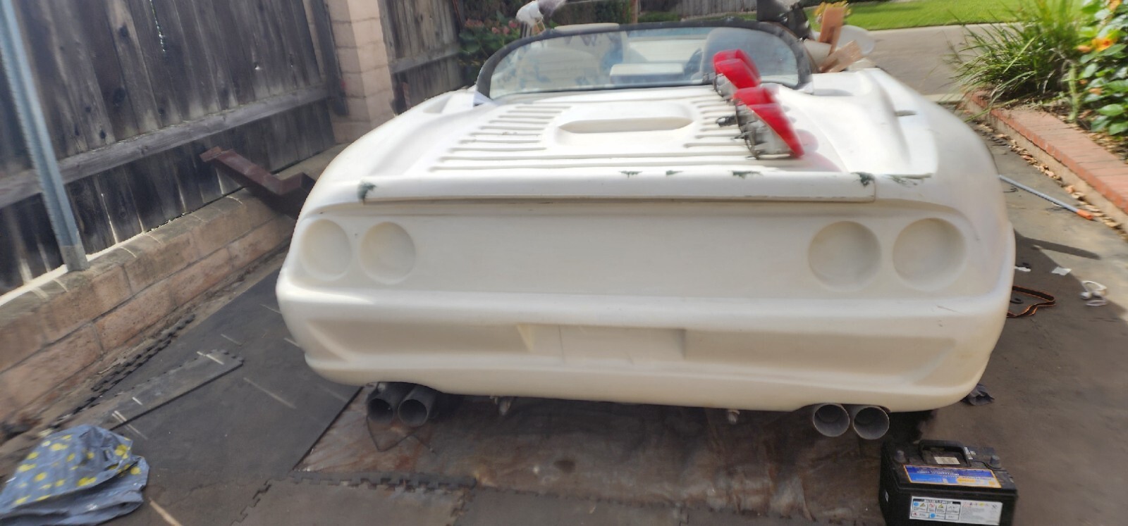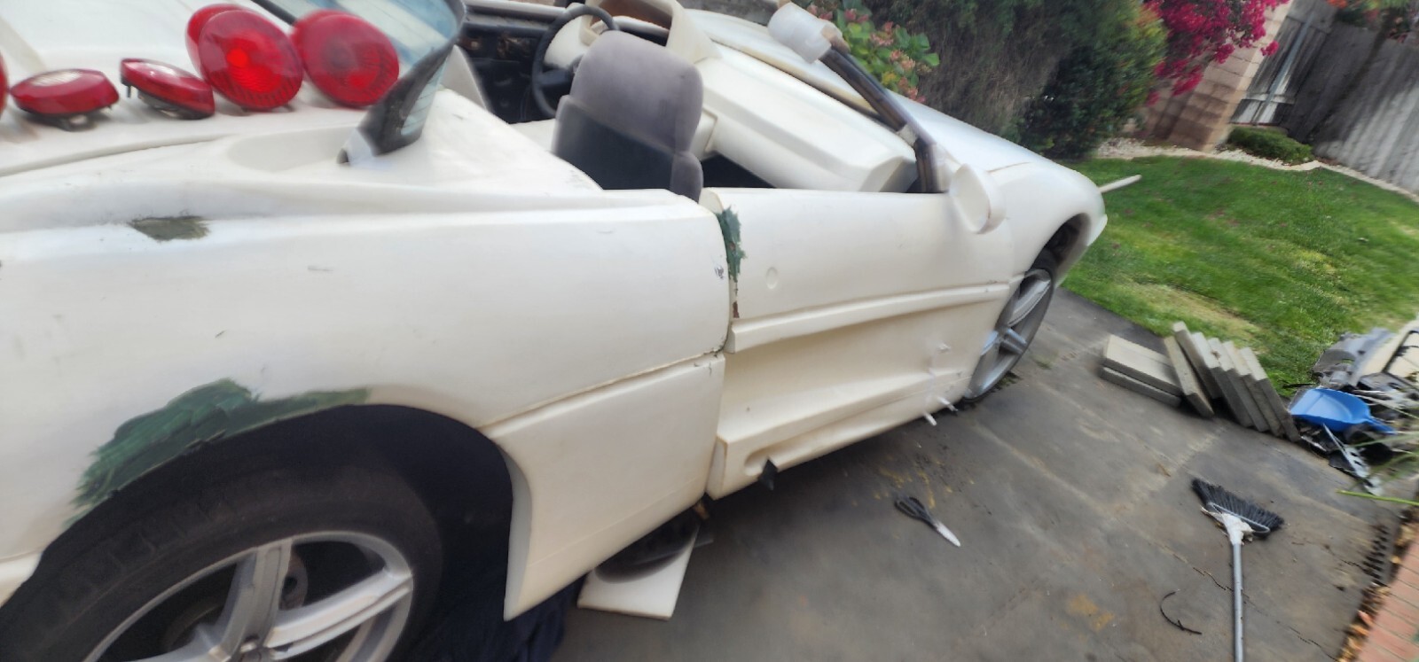 I am selling my Ferrari 355 replica. Unfortunately I have lost my wife to cancer & I can not bring myself to work on it anymore. the car does run & it has numerous new parts, including 3 inch frame extension, new shocks, bushings, new fuel injectors, a new fuel sending unit located in the gas tank, new brake calipers, new rotors, new battery & used vision rims & goodyear tires, used Toyota MR2 back window. The car does not have a windshield, & none of the parts are bolted on in the pictures provided which explains the misalignment. Additionally, I have a genuine Ferrari 355 dashboard that I'm willing to include in the deal for the right offer (cost me $1,000) Also I have all the Fiero parts & tires that will come with sale.Don @ 805-325-6110