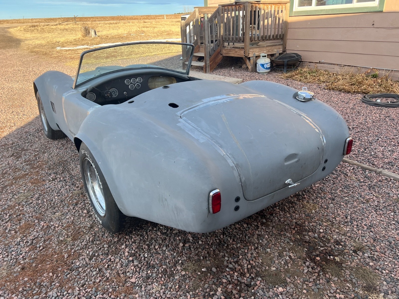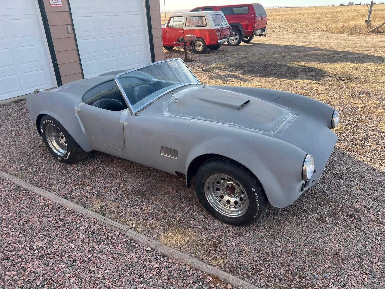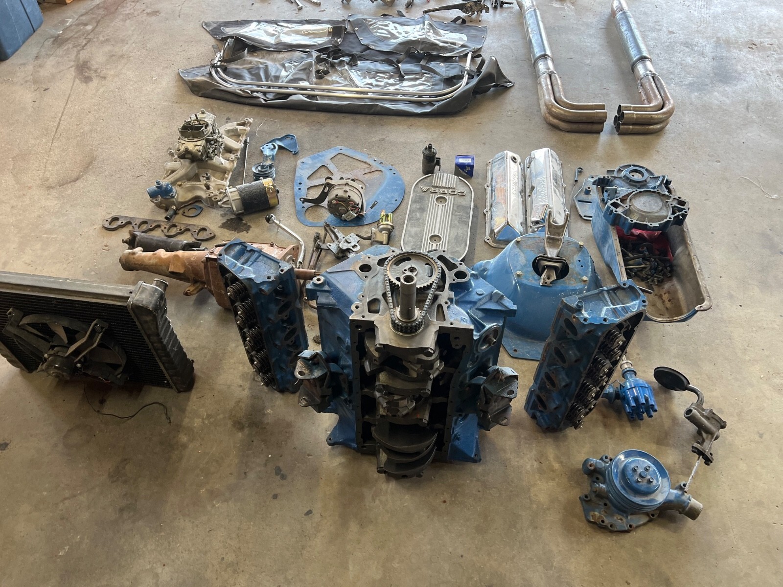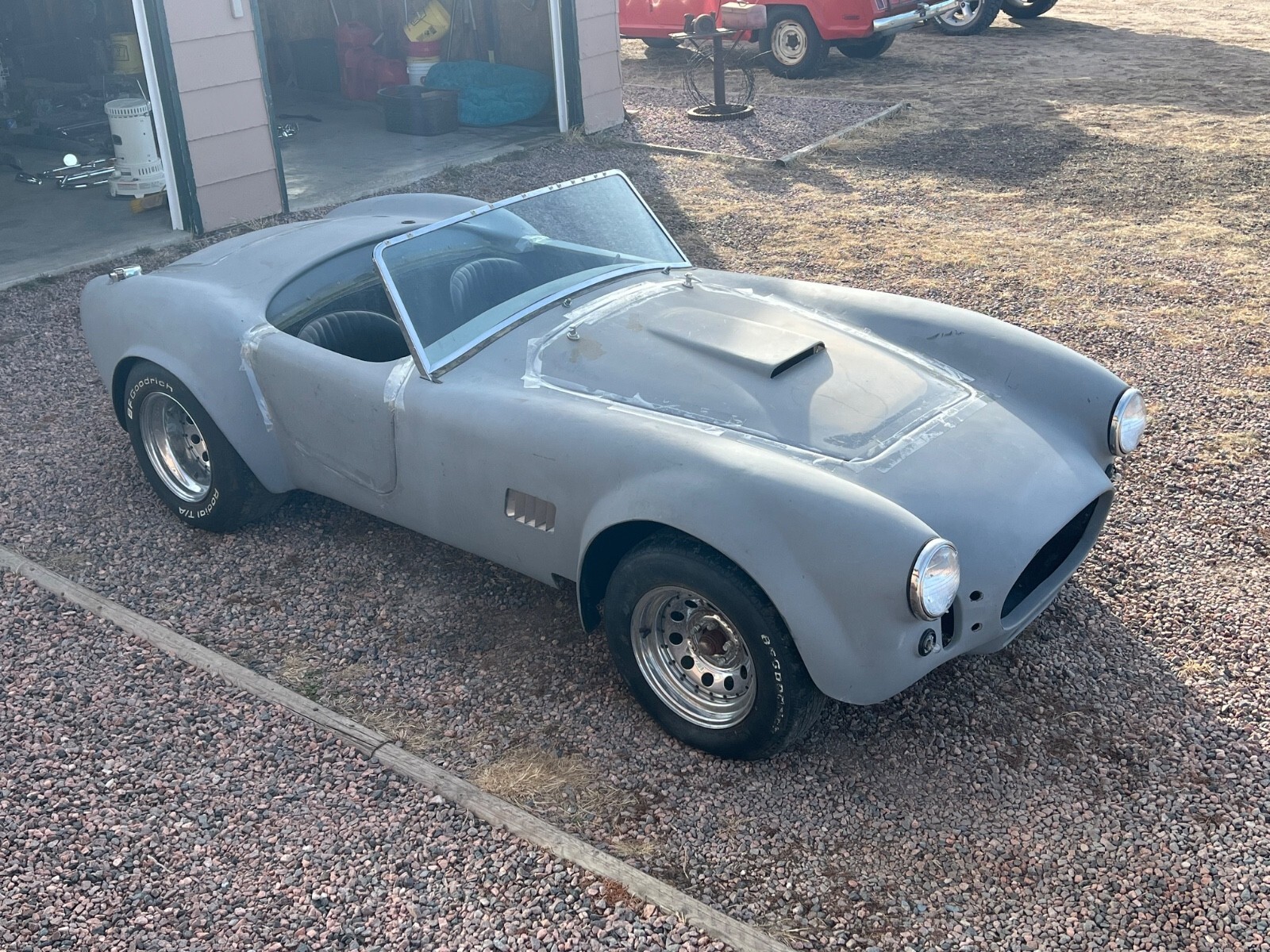 This is a very clean Cobra kit carNo titleNever completedI don’t know what brand it isThe fiberglass is very thick and solidNice boxed frameRack & pinion steeringFront disc brakesFront & rear coil over shocks9” rear endRebuilt 4294 speed c5ar 7006 dStewart Warner gaugesAftermarket wiring harnessSoft topRadiatorSeatsDrive shaftHeader kitPedalsSteering column & shaft7I9-6I9-7523 Sean