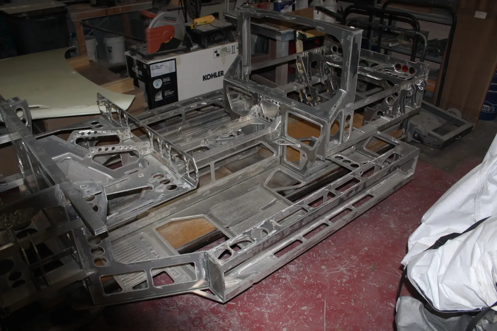 aluminum kit car chassis suitable for a replica body with a 96.5"-wheel base such as a Lamborghini Countach, Mclaren M6 GT, Manta Mirage Never mounted extra parts available through Strickland Motorsports out of Tx. Delivery available for a reasonable fee. to Lower Us only outside of lower 48 or international buyer responsibility. Happy Bidding!!!!!!!