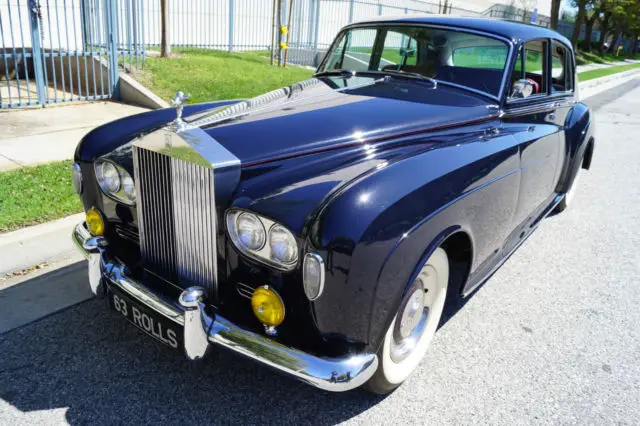West Coast Classics are proud to present and absolutely stunning and exceptionally rare example of this mostly unrestored 1963 Rolls Royce Silver Cloud III V8 4 door saloon, with only 2,044 of these completely hand built cars ever built (1962-65) and with very few fine examples remaining anywhere! This particular example boasts only two registered owners since new and has rare options of air conditioning, 'Sundym' reflective tinted glass, White sided tubeless tires, power brakes and power windows. Finished in an exceptionally striking color of 'Royal Blue' with 'Red' pin-stripes matching a virtually flawless 'Dark Red' color Connolly hides interior with a light gray carpeting and mohair headliner showing superb maintenance and care from its two long time owners.