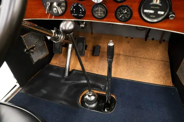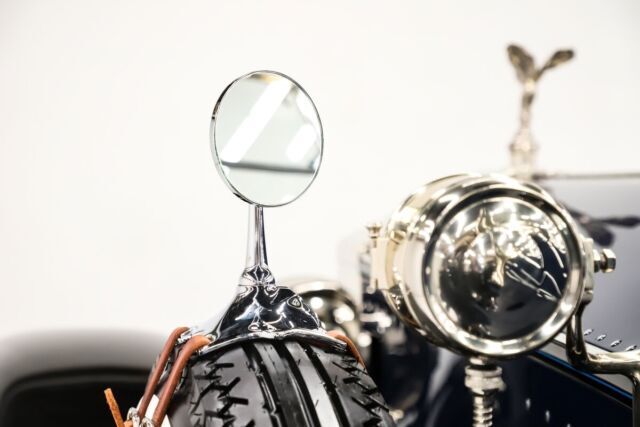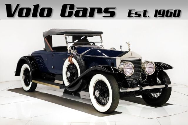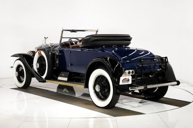EXTERIOR: Very sporty Piccadilly roadster with knife edge fenders. The body is pristine. I did not find any kind of imperfection; it is laser straight with no damage. The paint in polished like glass. All 6 wire wheels are restored and have new whitewall tires. The roadster top is meticulously restored and is wearing a rich gray canvas. It has a matching set of side curtain windows. In back is an optional luggage rack. In front is the iconic Rolls Royce grill and Spirit of Ectasy ornament. It has 2 huge nickel plated headlamps and matching cowl lamps.